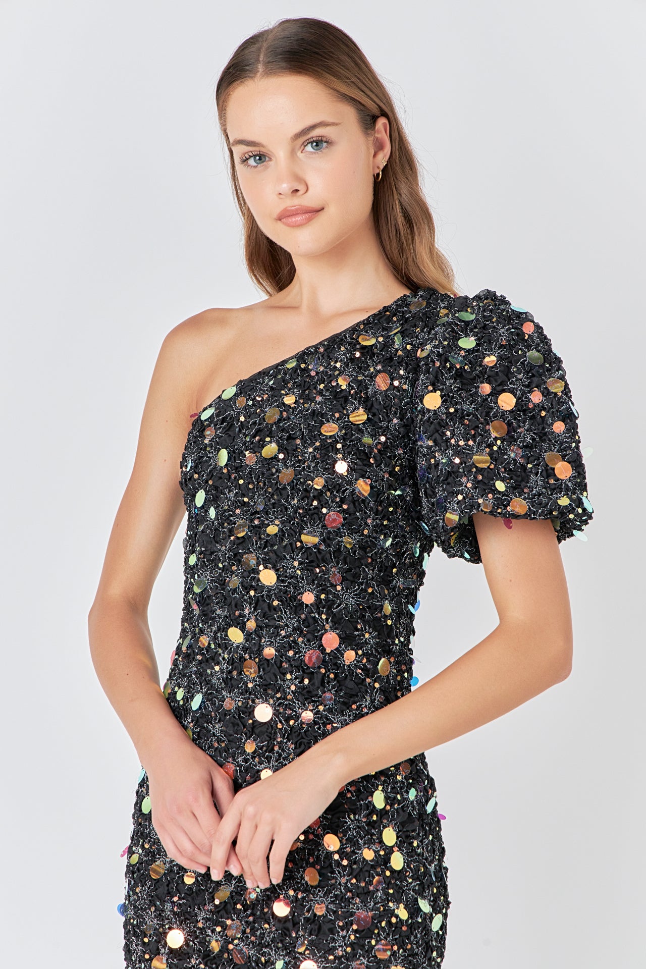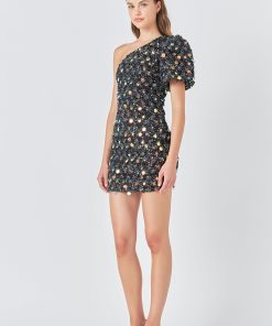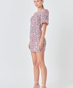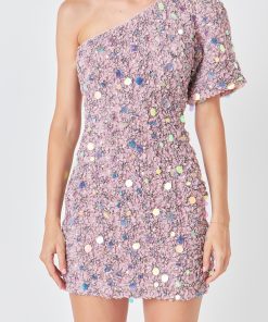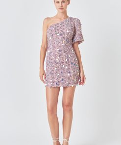 Endless Rose Women’s Dresses Premium One-shoulder Sequin Mini Dress | Black|dusty Lavender