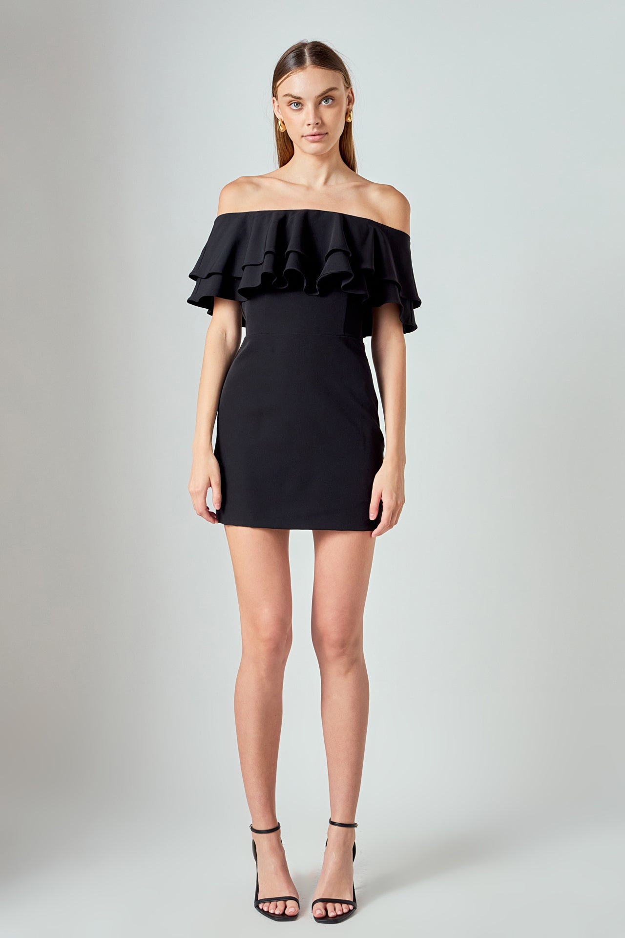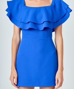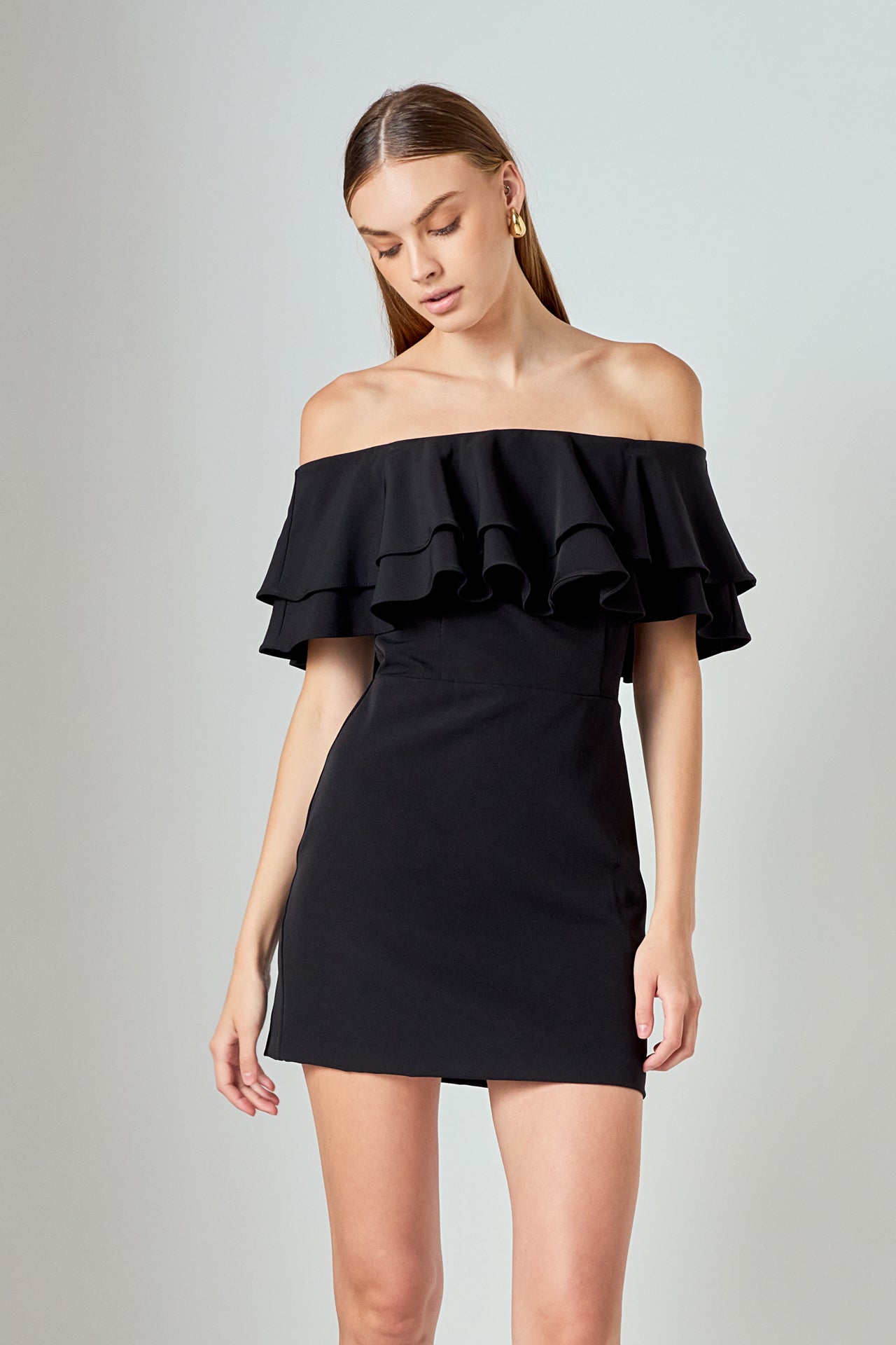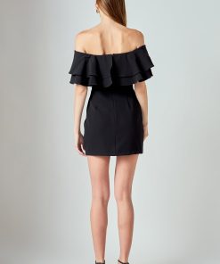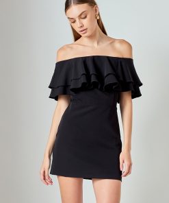 Feel confident and flirty in this ruffled off-shoulder mini dress. The perfect mix of sweet and sexy, this dress features 2 layers of ruffles along the neckline. The mini length is perfect for showing off your legs, while the center back zipper closure ensures a perfect fit. Whether you’re headed to a party or a night out on the town, this dress is sure to turn heads.