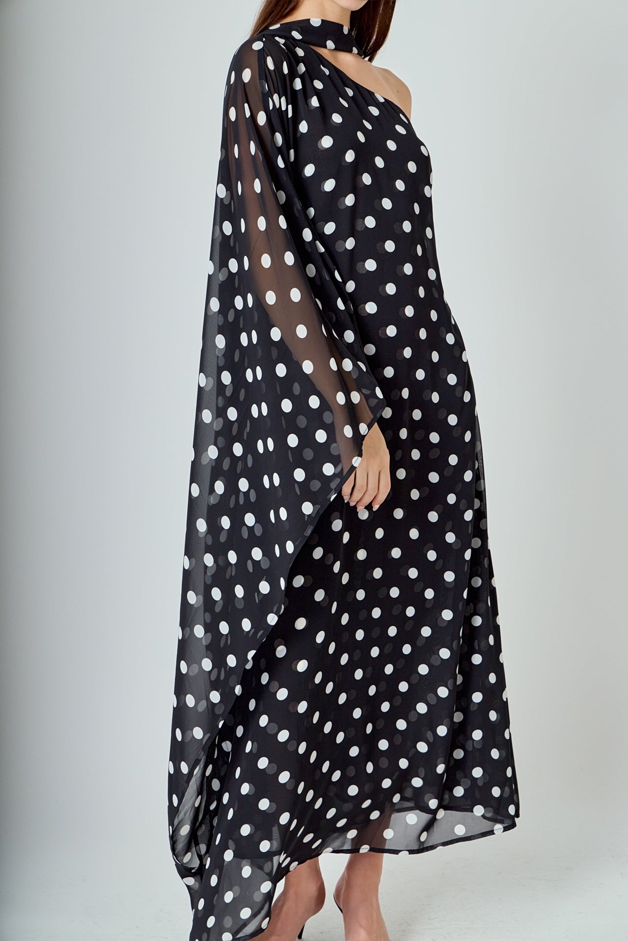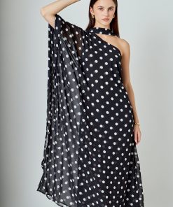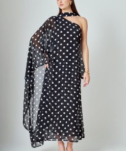 Sash Polka Dot Maxi Dress is the perfect blend of fun and elegance. The classic polka dot print adds a playful touch to this floor-length dress, while the sash accentuates your waist for a flattering silhouette. The one shoulder style and bat wing sleeves give a modern twist to this timeless design. It’s made with high-quality, lightweight fabric that drapes beautifully on any body shape. Perfect for any occasion, this dress will have you looking stylish and chic. Make a statement and stand out in this eye-catching dress. Shop now and embrace your unique style!