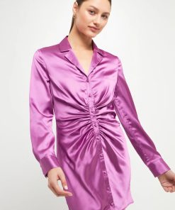 Endless Rose Women’s Dresses Satin Ruched Long-sleeve Mini Dress | Grape