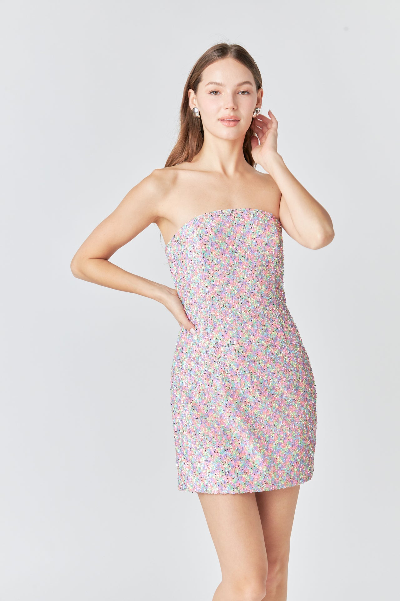 Shine bright and turn heads with our stunning Sequins Strapless Mini Dress! The shimmering sequins add a touch of glamour while the fitted design flatters every curve. Perfect for a night out or special event this mini dress will be sure to make a statement. The strapless neckline adds a hint of sexiness and the mini length shows off your legs. Elevate your wardrobe with this must-have dress perfect for any occasion. Don’t miss out shop now and steal the spotlight! Available in multiple colors.
