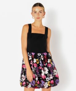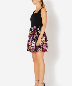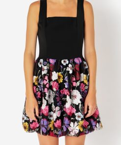 Endless Rose Women’s Dresses Square Neck Floral Embroidered Mini Dress | Black
