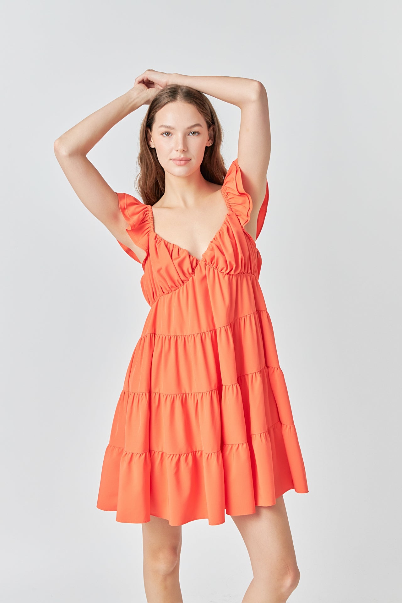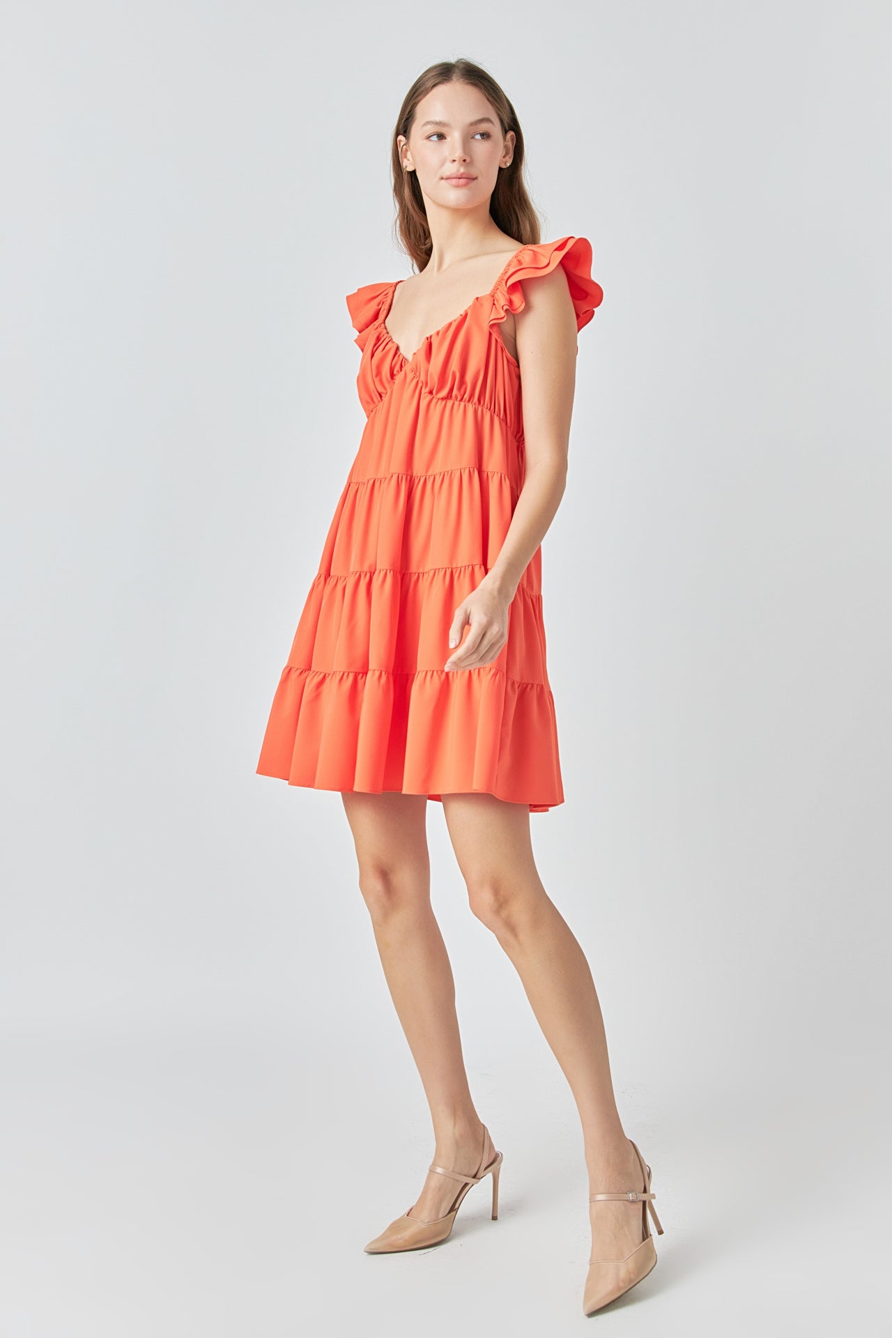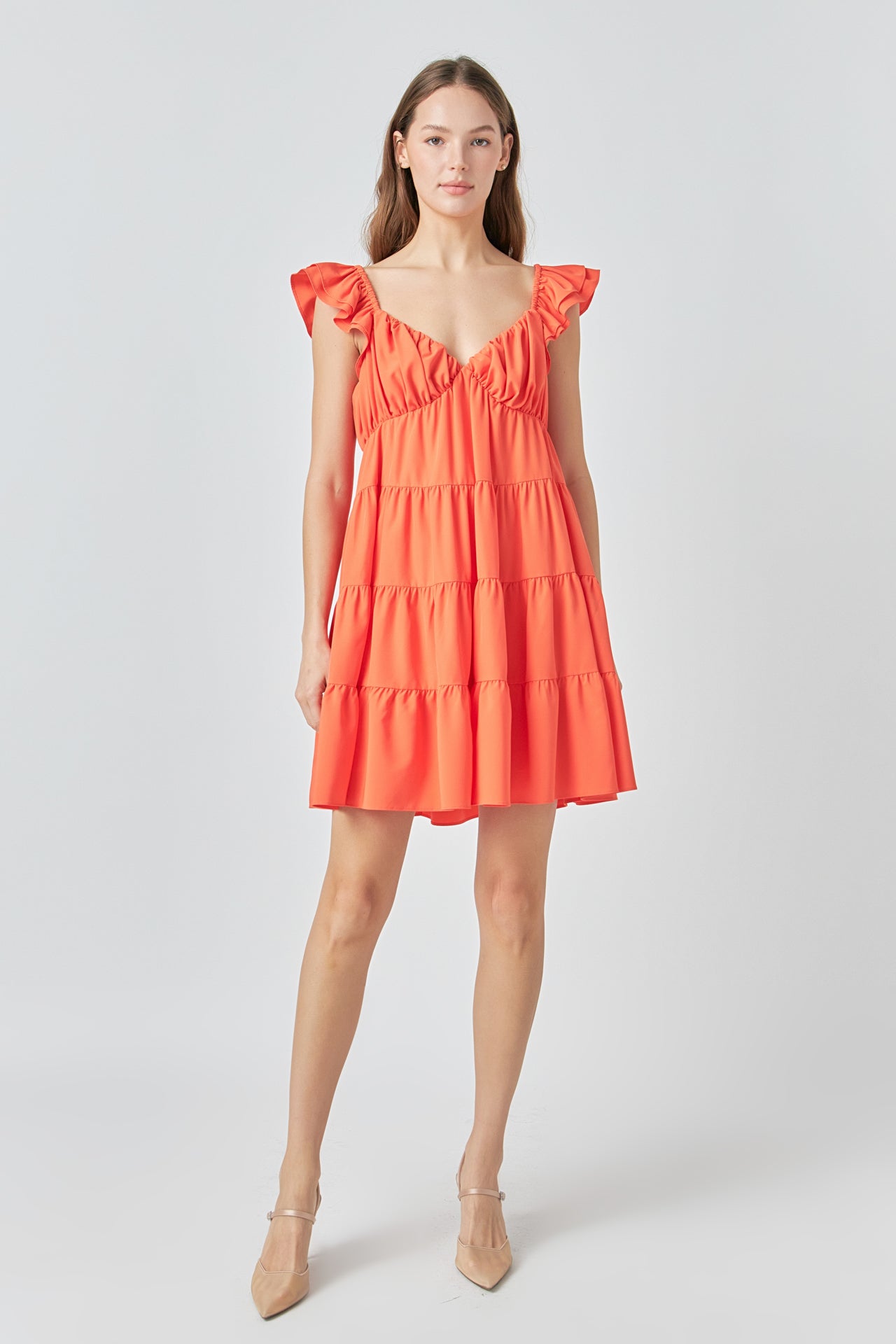 - Layered ruffle cap sleeves