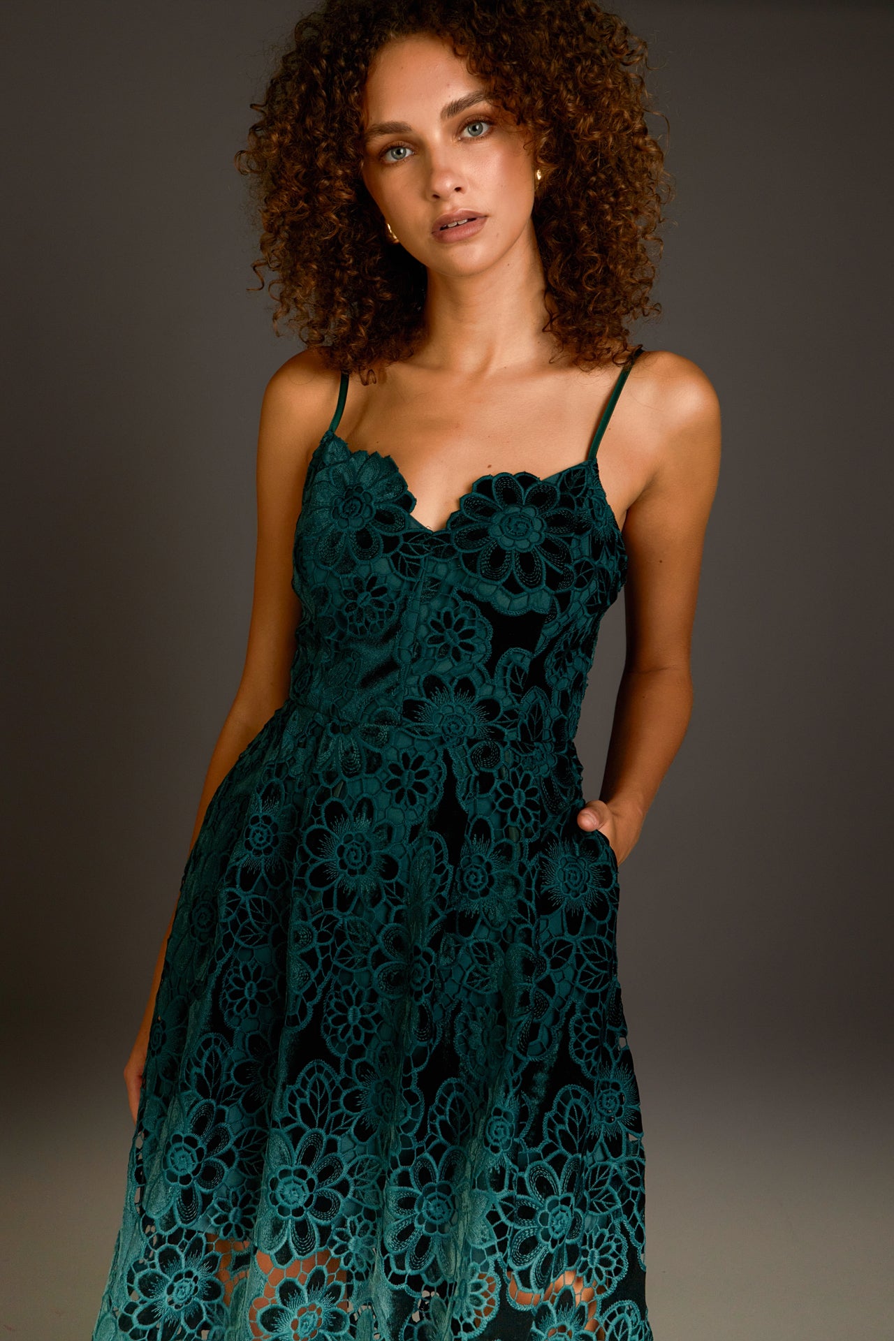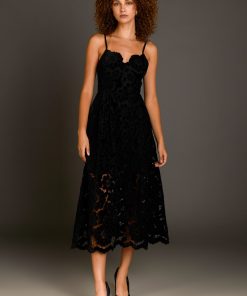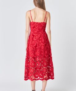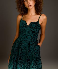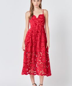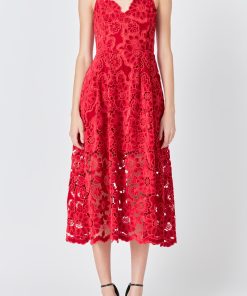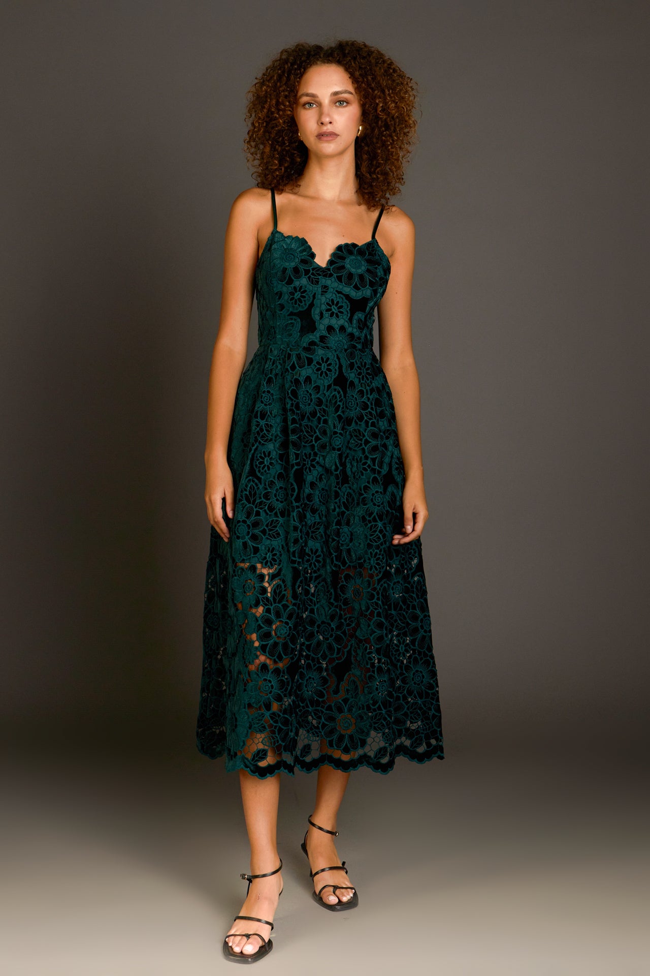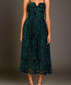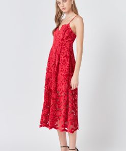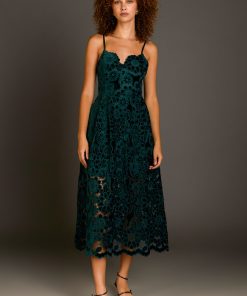 Endless Rose Women’s Dresses Velvet Lace Midi Dress | Black|emerald|red