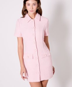 Endless Rose Women’s Dresses Victoria Fitted Collared Tweed Mini Dress | Pink