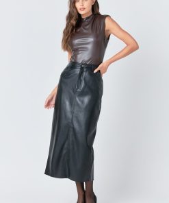 Endless Rose Women’s Faux Leather Maxi Skirt | Black