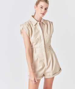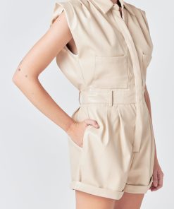 Looking for the perfect one-piece outfit? Check out our Faux Leather Romper. This romper features a front pocket, collar, buttoned front, waistband, and lining. It’s the perfect outfit for a night out on the town or a day at the office. You’ll love the way you look and feel in this romper.