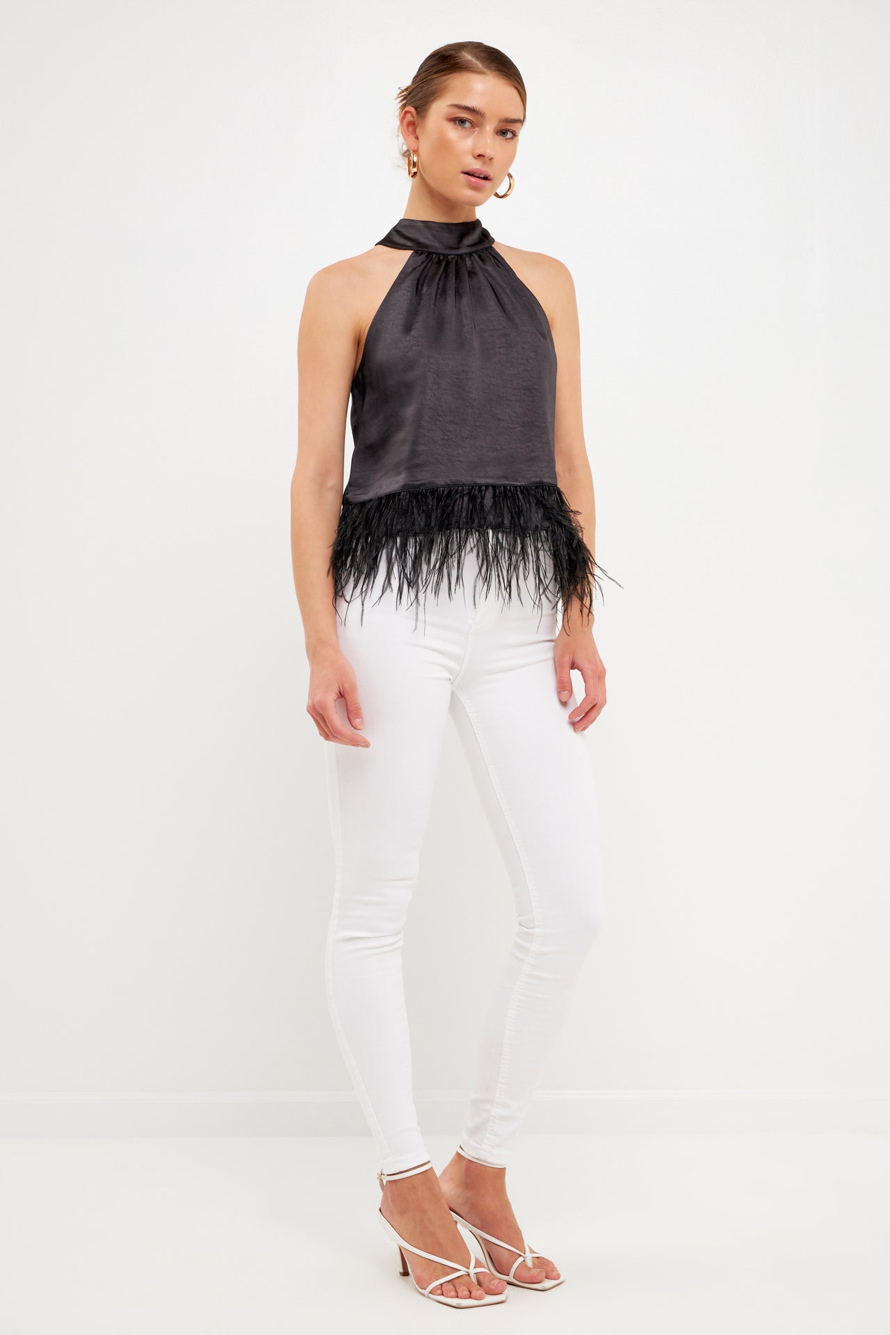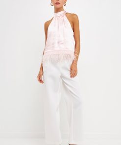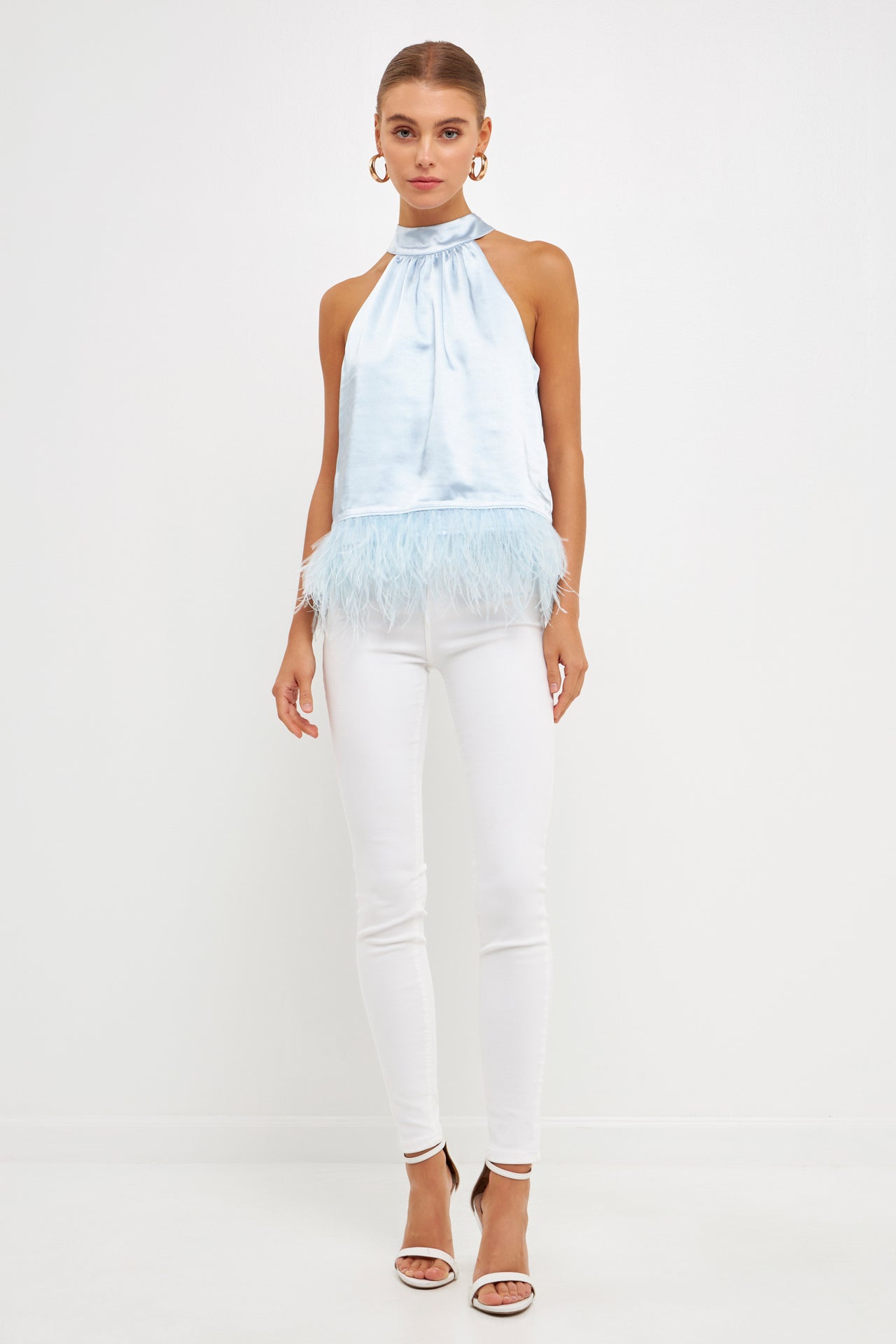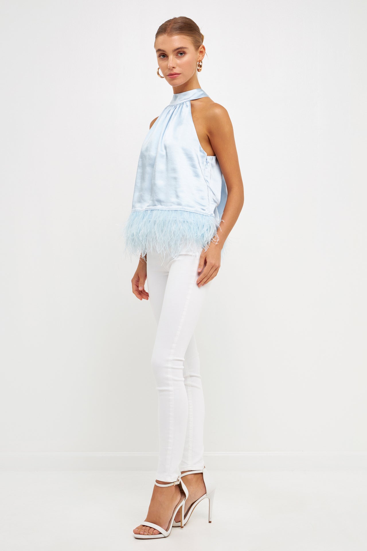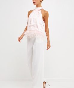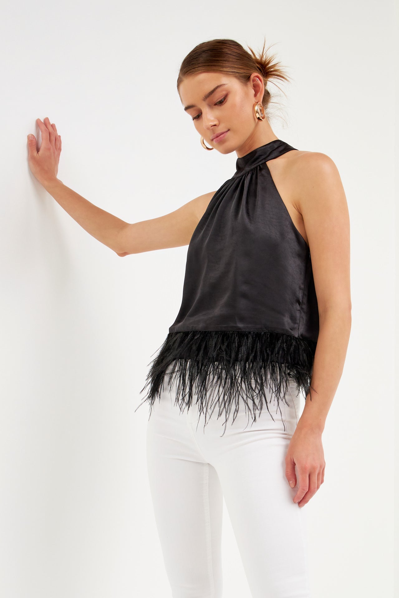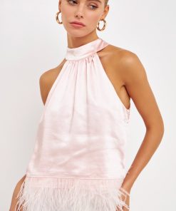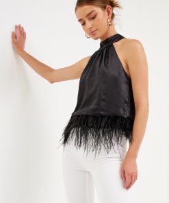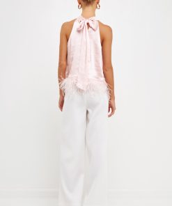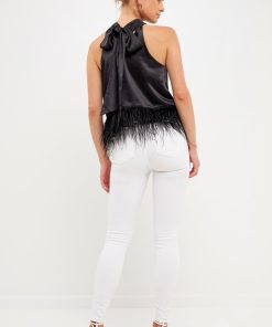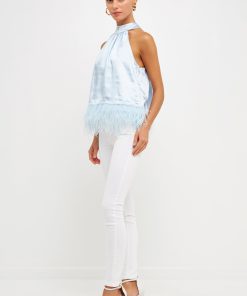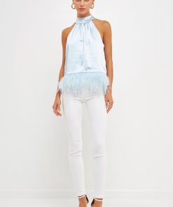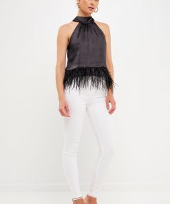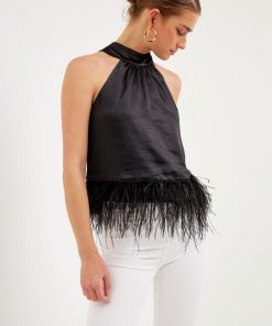 Endless Rose Women’s Feather Trim Top | Black|pastel Pink|ocean Blue