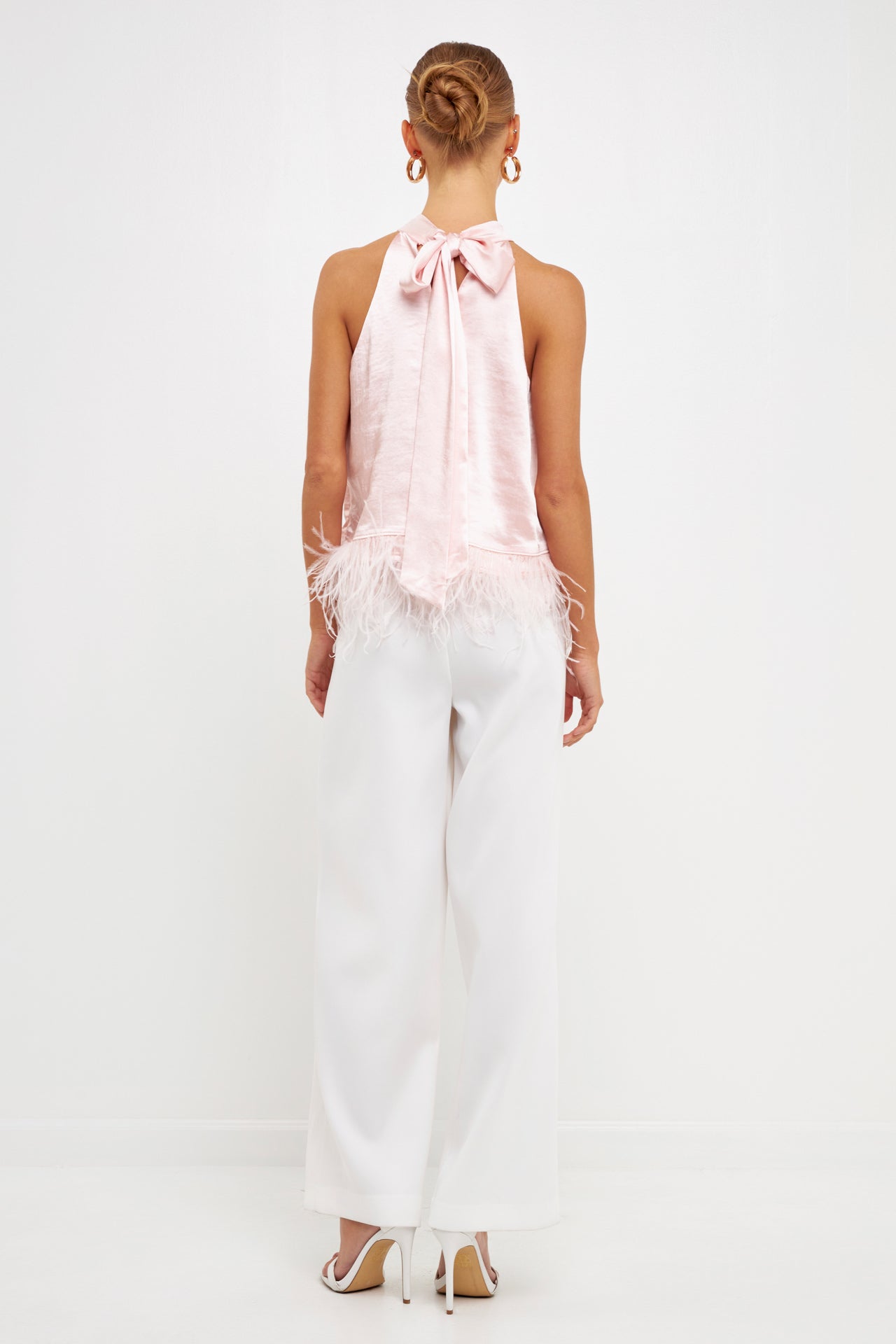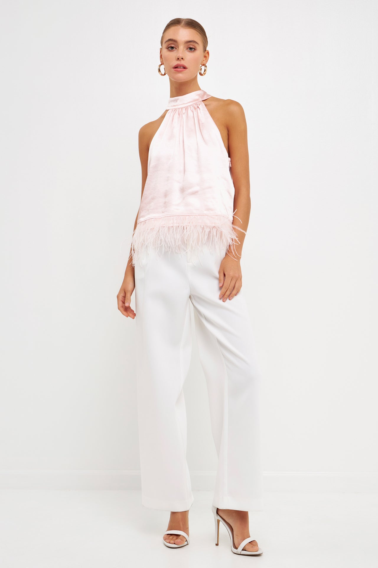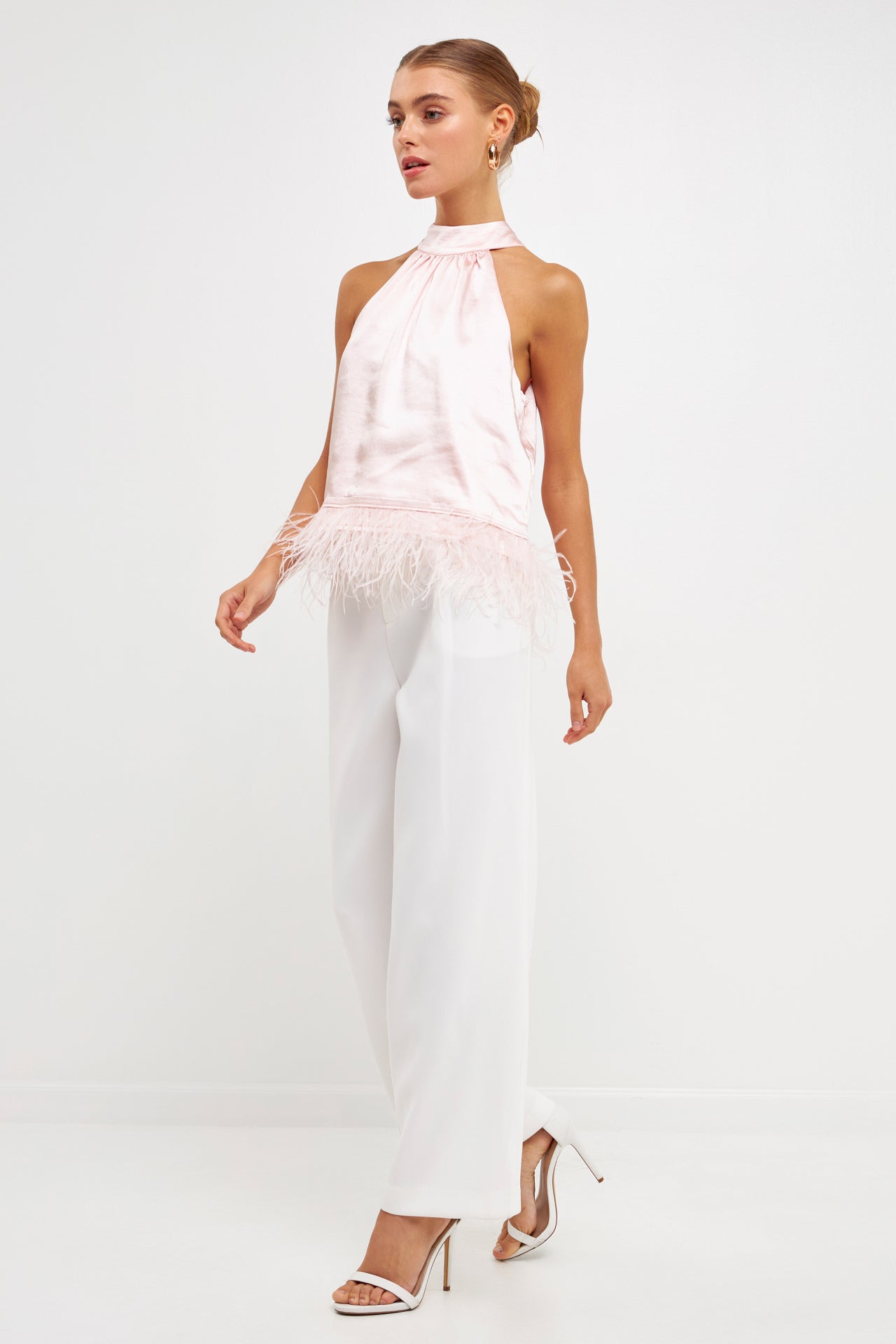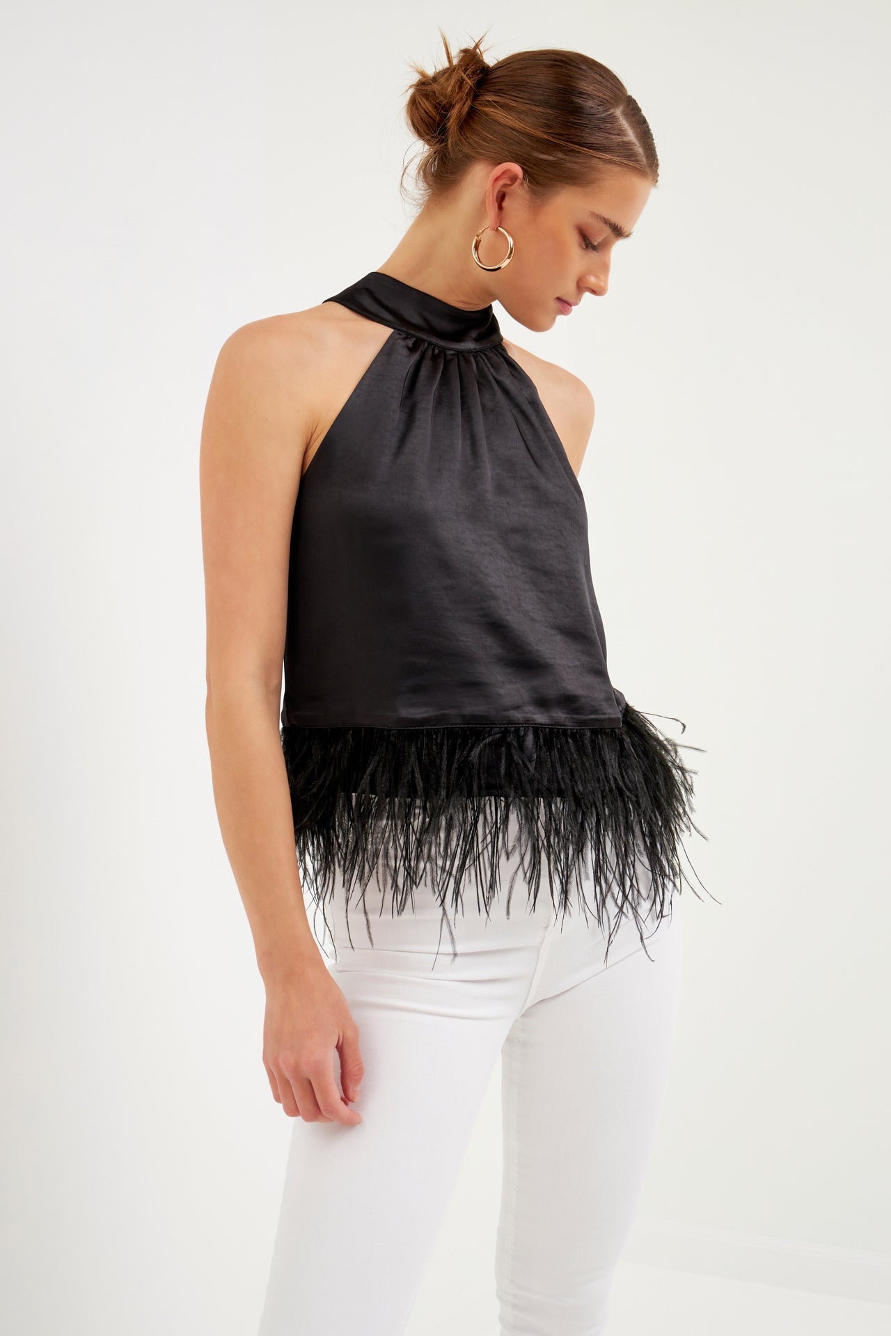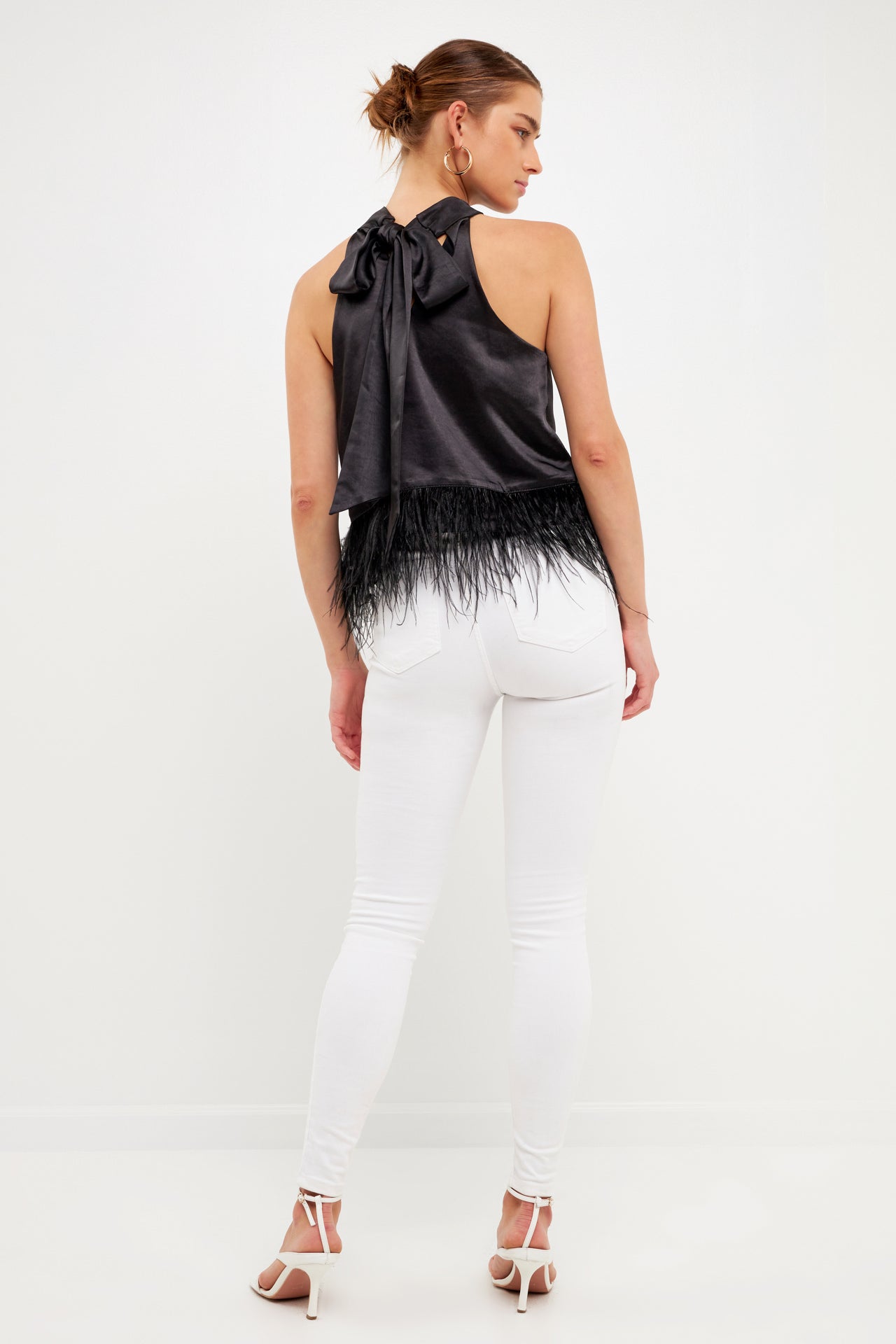 Endless Rose Women’s Feather Trim Top | Black|pastel Pink|ocean Blue