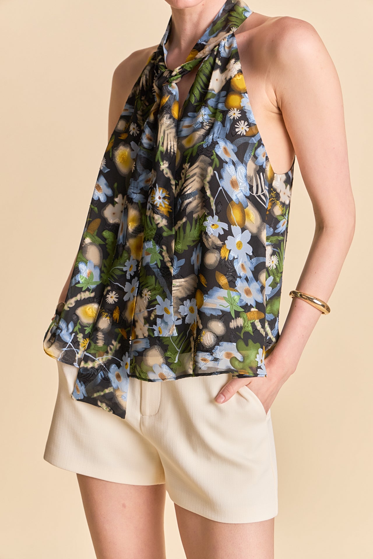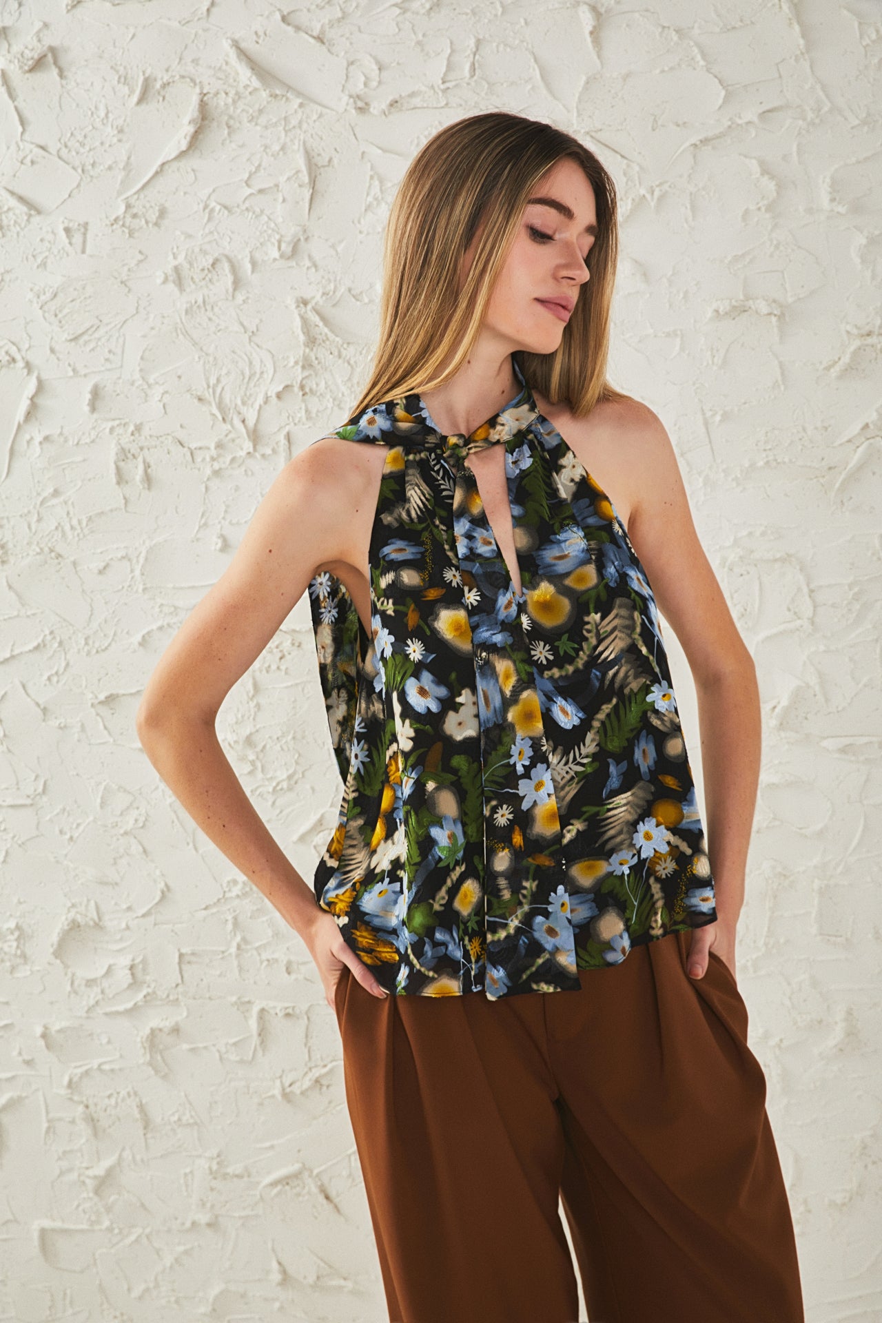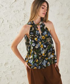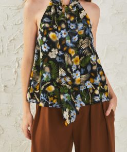 Introducing our Floral Halter Top the epitome of elegance and femininity. Crafted with a delicate floral chiffon fabric this top exudes a sense of grace and sophistication. The regular length ensures a flattering fit while the halter neck adds a touch of allure. With a front neck tie detail this top offers versatility and style. Whether you’re heading to a summer soir’e or a casual brunch our Floral Halter Top is the perfect addition to your wardrobe. Elevate your look and make a statement with this timeless piece. Shop now and embrace effortless chic.