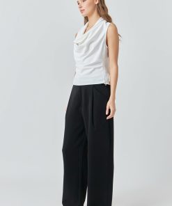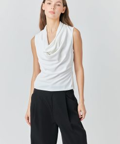 Add a dose of sophistication to your wardrobe with the Flowy Neckline Sleeveless Top from endless rose. Perfect for date night, this elegant top features a flowy neckline and sleeveless design. Crafted with a lightweight fabric, you’ll stay comfortable while looking effortlessly chic. Dress up the top with statement earrings and some wide leg pants for a timeless look that will have you feeling confident wherever you go.