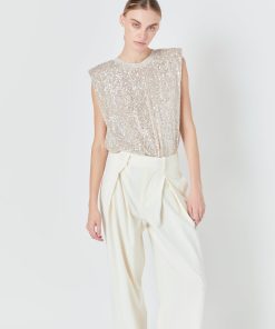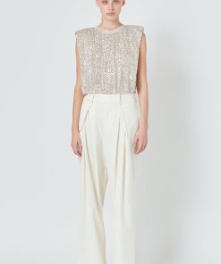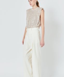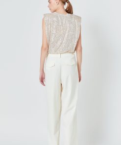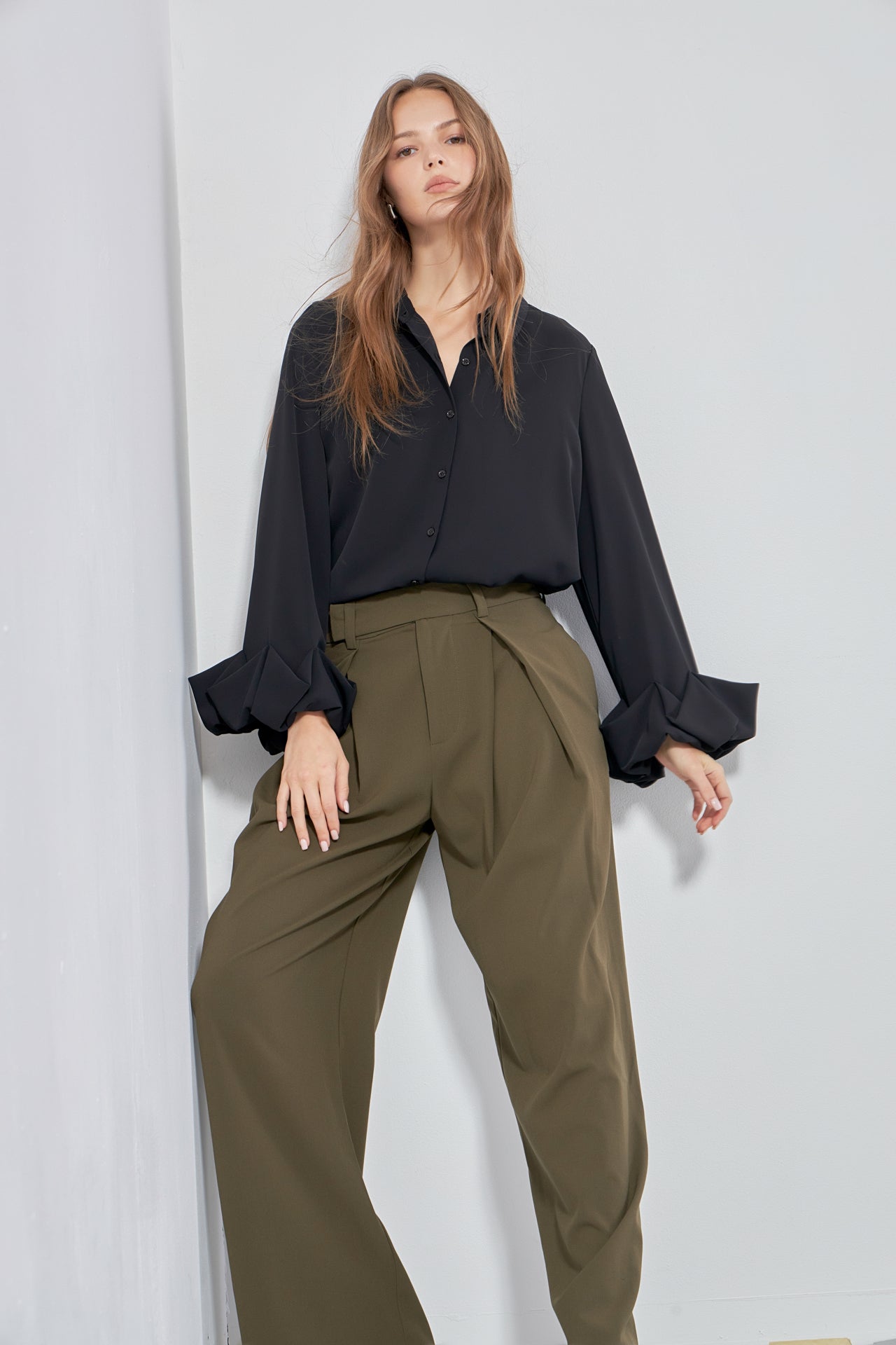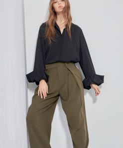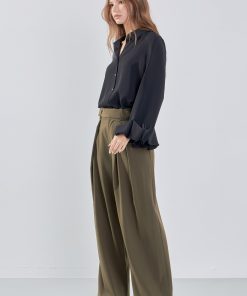 Endless Rose Women’s Front Pleat Wide Trousers | Olive|ivory