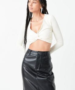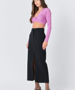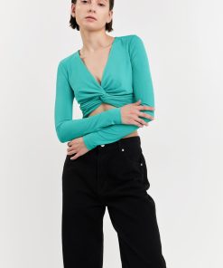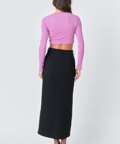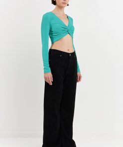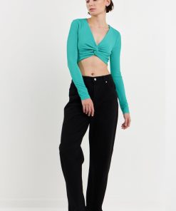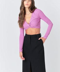 Endless Rose Women’s Front Twist Cropped Long Sleeve | Grape|ivory|teal