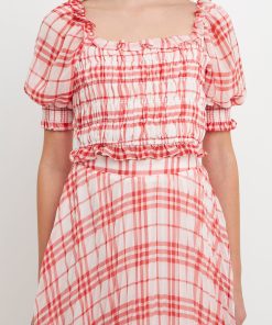 You’ll love the look of this top – and the feel, too! We can’t get enough of gingham print this season, and this top is the perfect way to wear it. The square neckline and ruffled neck give you a touch of femininity, while the smocked bodice ensures a comfortable fit. Pair it with jeans or trousers for a cute and casual look.
