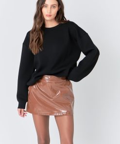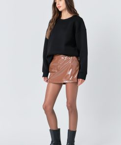 Endless Rose Women’s Glossy Faux Leather Skort | Brown