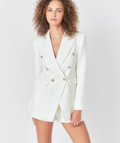 Elevate your wardrobe with our Gold Buttoned Tweed Blazer – the perfect blend of classic and trendy. The front buttons and structured collar add sophistication while the front flap pockets offer functionality. Our blazer is crafted from high-quality tweed for a luxurious touch. The long sleeves ensure versatility making it suitable for any season. Whether you’re dressing up for a special occasion or dressing down for a casual day out this blazer will make a statement. Upgrade your style game with this must-have piece. Accessorize with a statement necklace for a chic look. Perfect for work or play. Shop now!