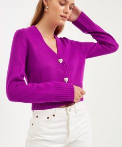 Endless Rose Women’s Heart Button Cardigan | Purple|orange
