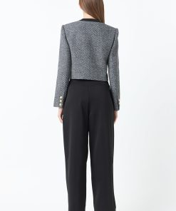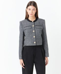 Get ready to break the fashion molds with this Herringbone Contrast Blazer! A round neckline and long sleeves complement the unique herringbone design while contrast details add an edgy yet classy element. This blazer can be dressed up or down for any occasion and will make you stand out from the crowd. It is the perfect choice for a bold and modern look. Get the perfect wardrobe staple for any season and style. Grab yours today and let the compliments pour in!
