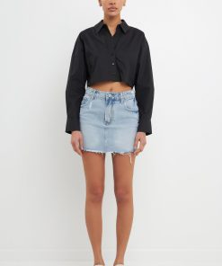 Endless Rose Women’s High Low Acid Wash Denim Skirt | Denim