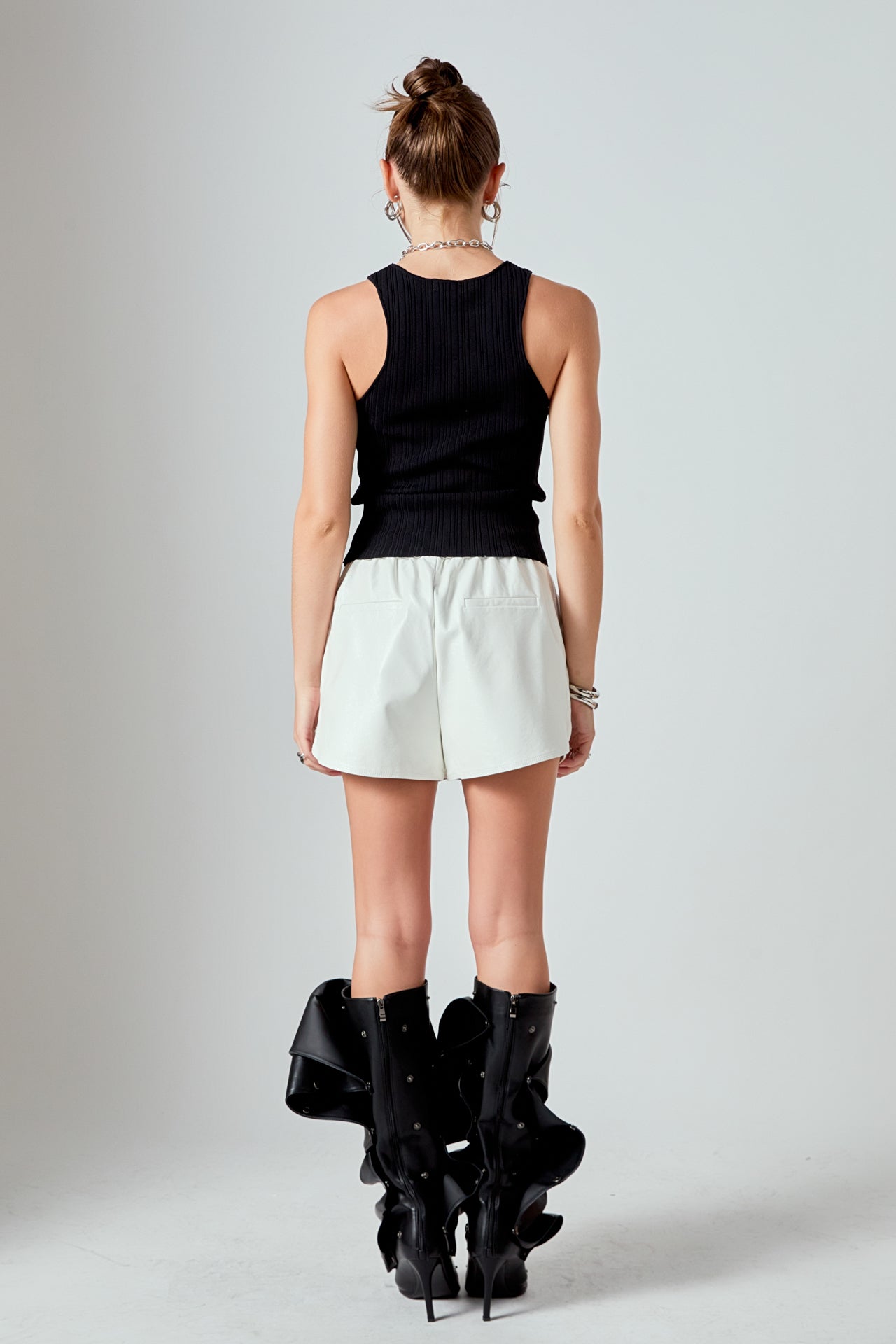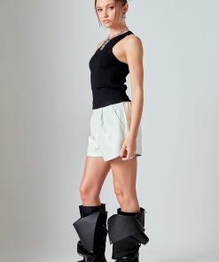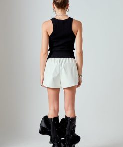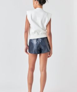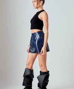 Introducing our stylish High-Waisted Faux Leather Shorts. The high waist design with an elastic waistband in the back and a soft, lined interior provides a figure-flattering fit that looks great. Our shorts are crafted from a shiny faux leather fabric, for a sleek and contemporary look. So, if you’re looking for a stylish and versatile piece perfect for any season, look no further!