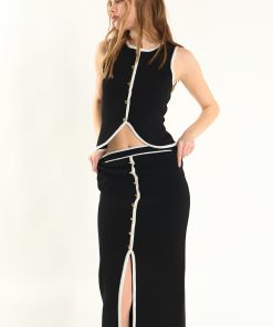 Endless Rose Women’s Knit Contrast Maxi Skirt | Black & Ivory