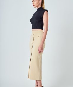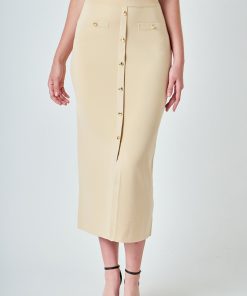 Endless Rose Women’s Knit Pocketed Midi Skirt | Beige