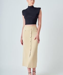 Endless Rose Women’s Knit Pocketed Midi Skirt | Beige