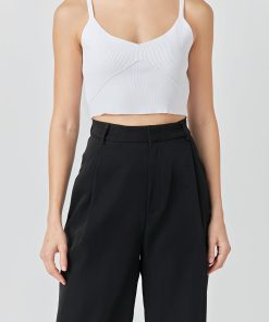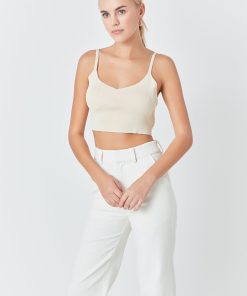 Add a touch of luxury to your everyday look. Made with a soft and comfortable knit fabric, this top is perfect for layering or wearing on its own. With delicate shoulder straps and a fitted silhouette, this top will add some glamor to any outfit. Wear it with jeans and a blazer for a night out, or dress it up with some trousers for work.