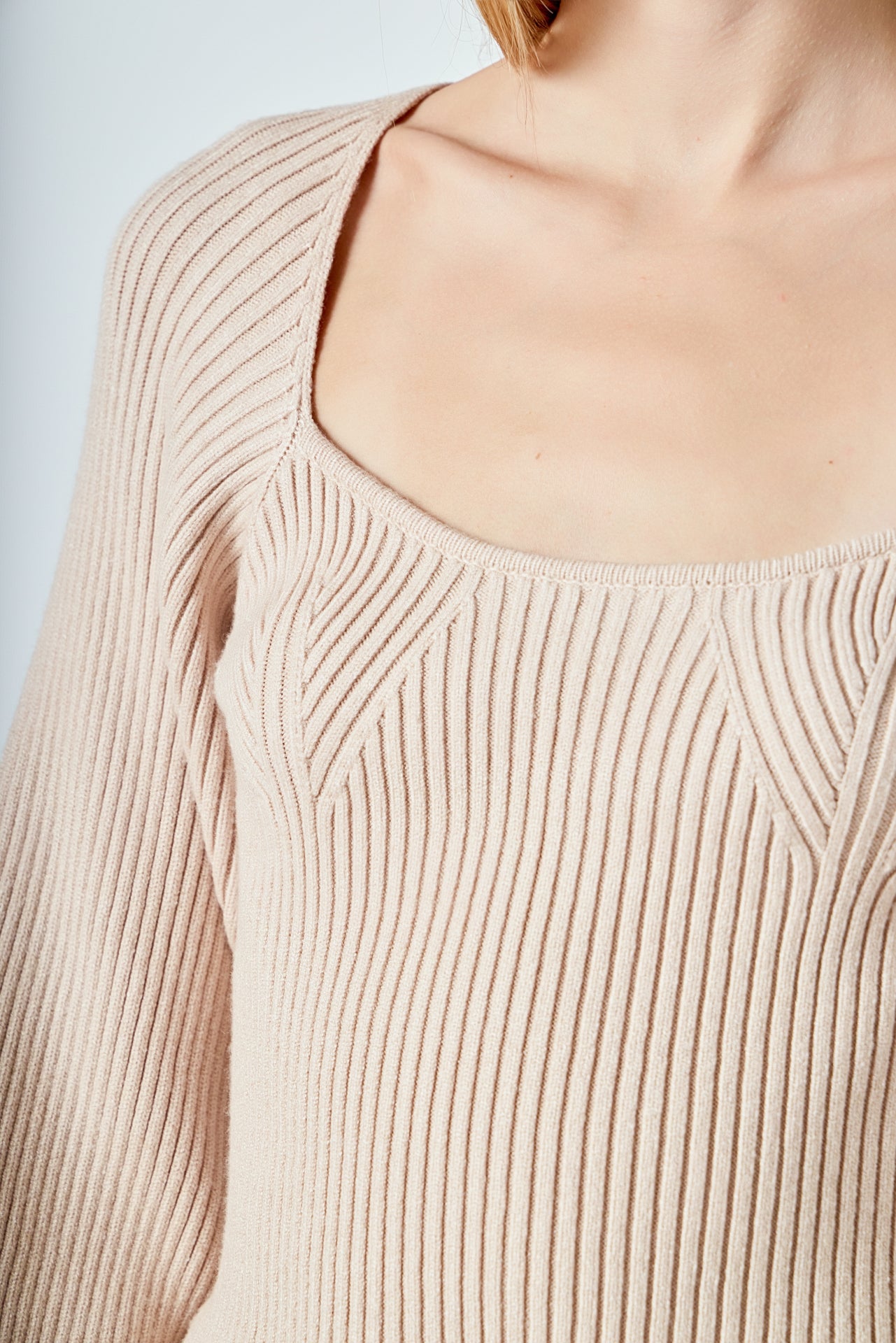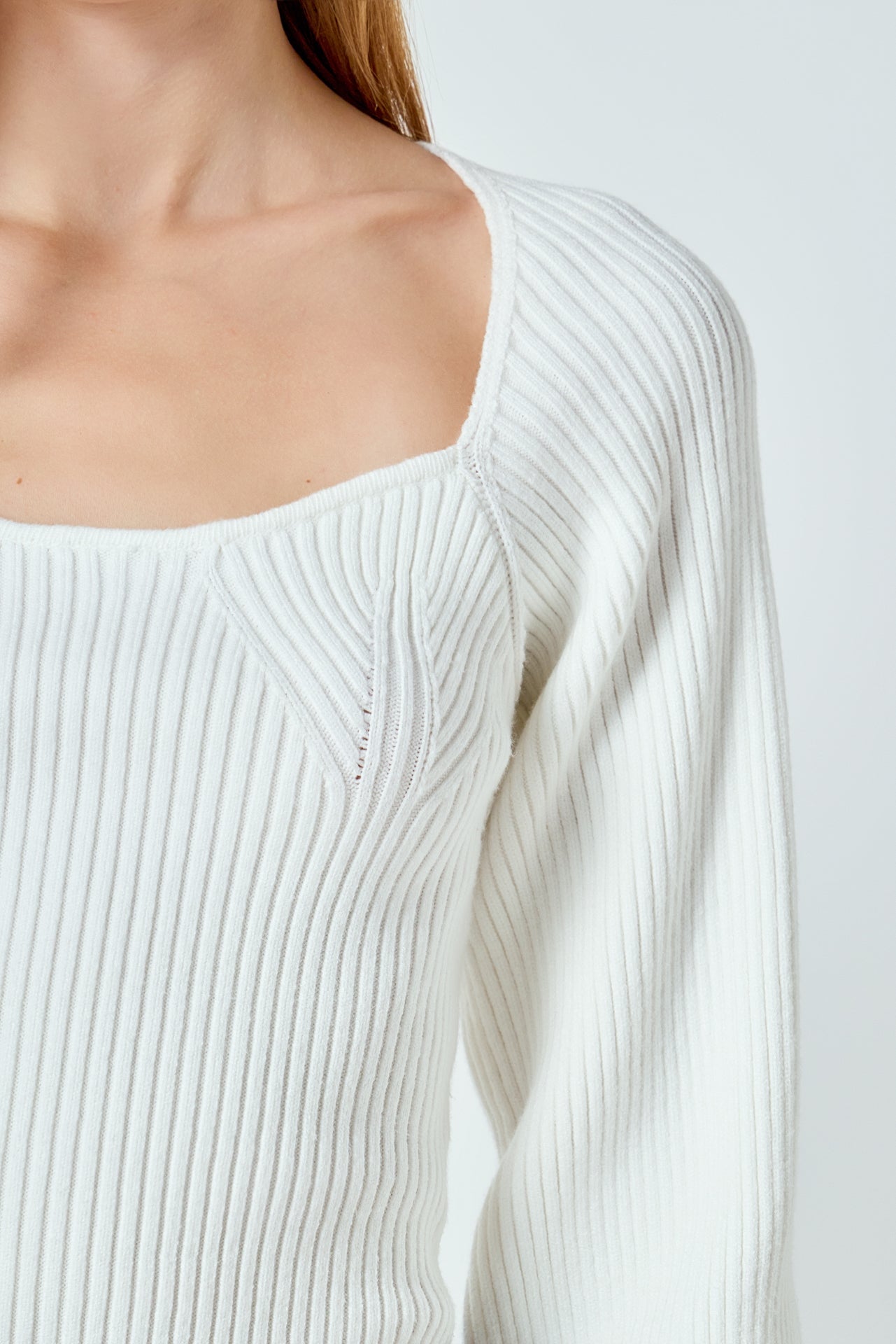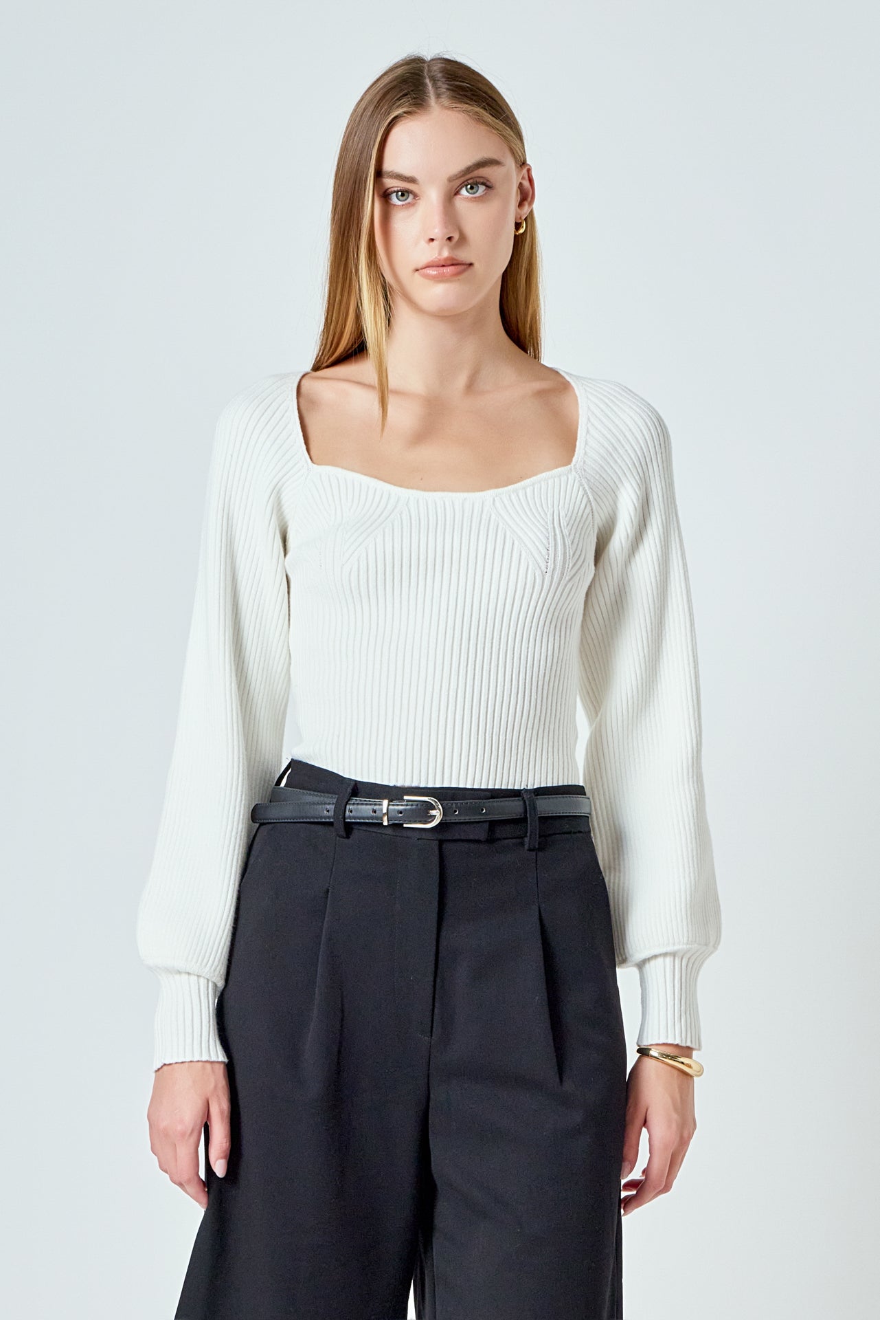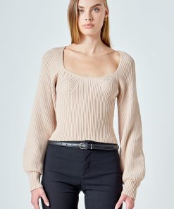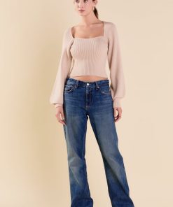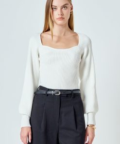 Warm and versatile, this top is knit from a light and airy ribbed fabric that’s perfect for layering. The square neckline and puff sleeves are just the right amount of feminine to take you from day to day. Pair with your favorite jeans and boots or a skirt for a more feminine look.