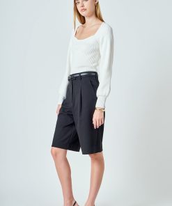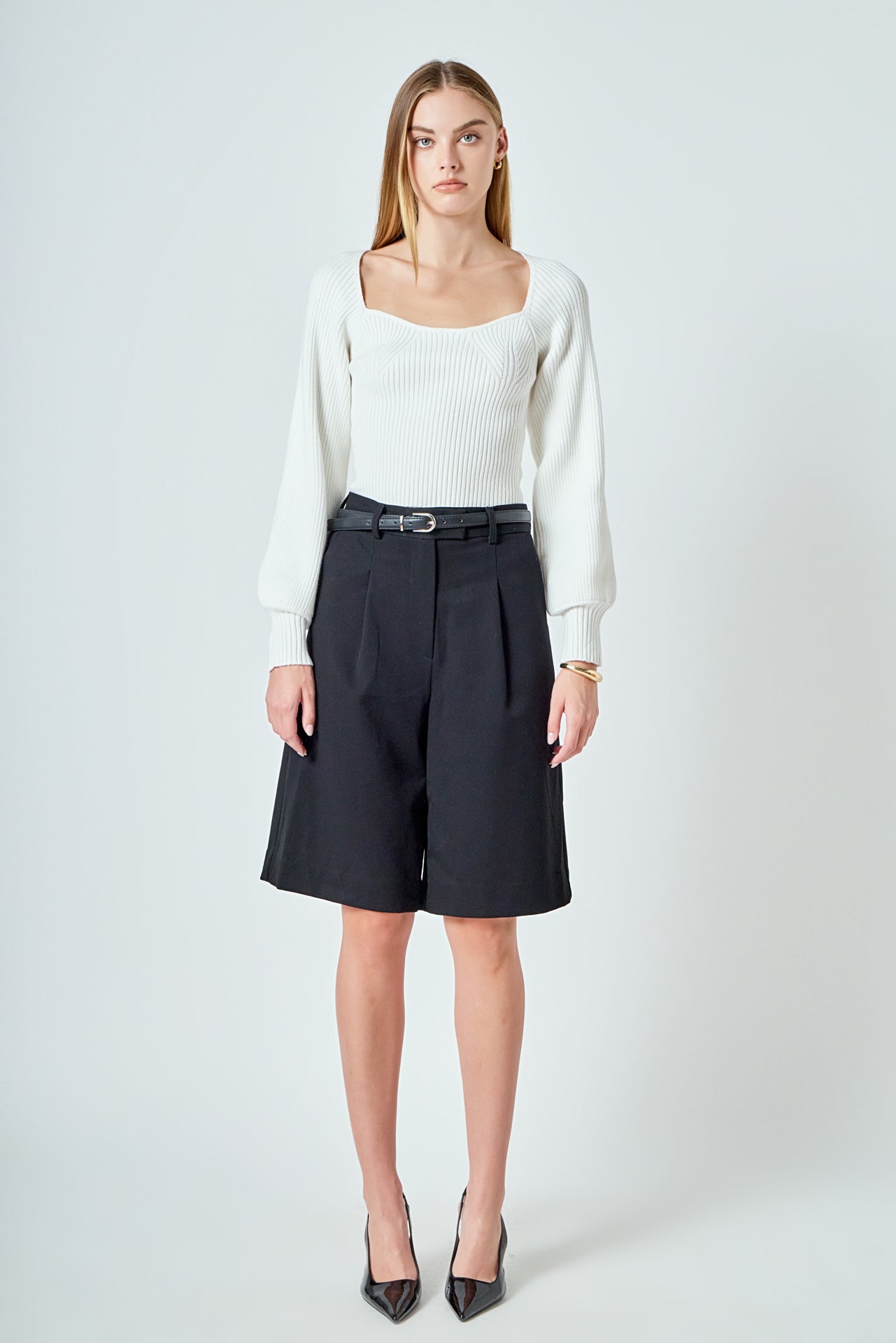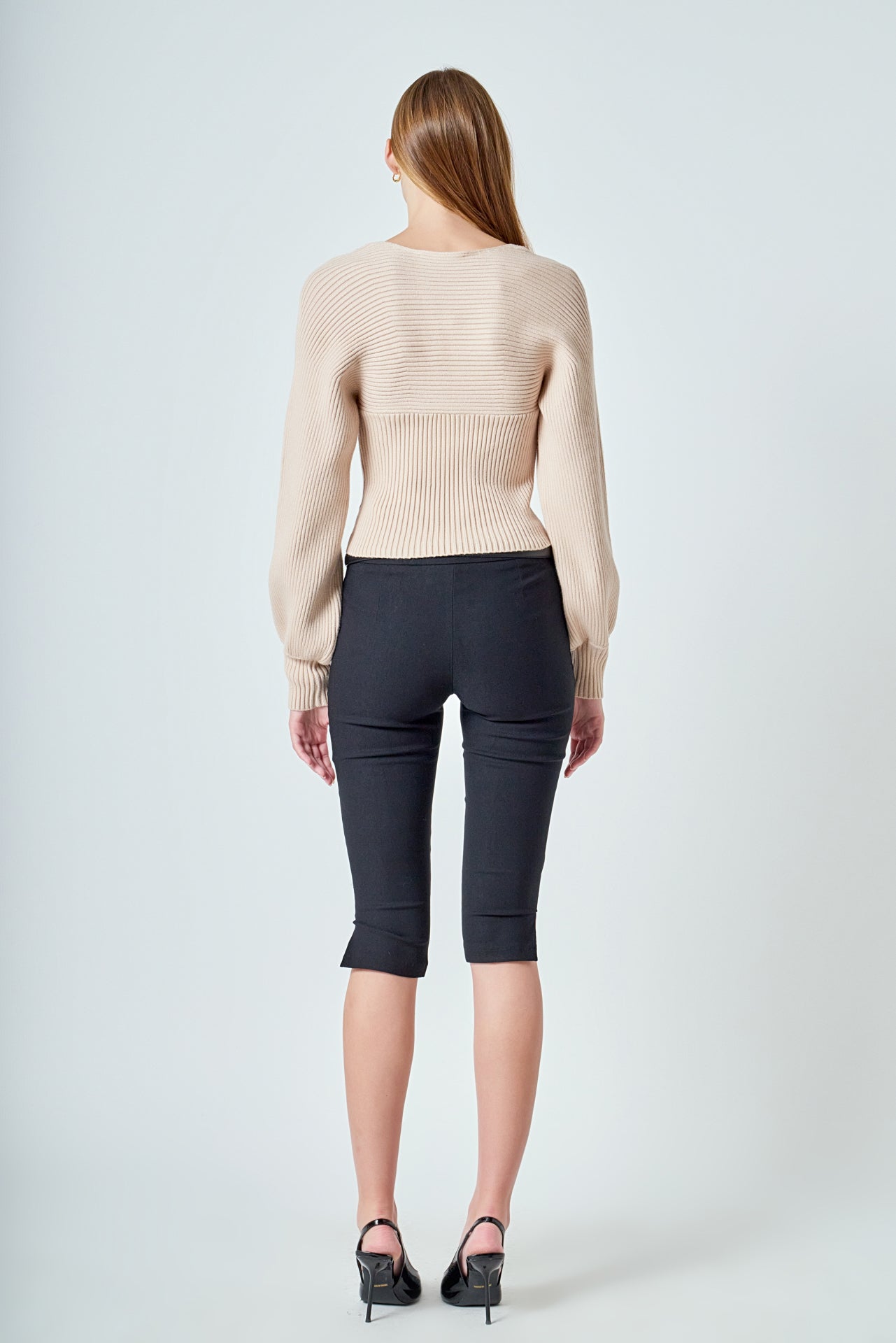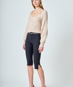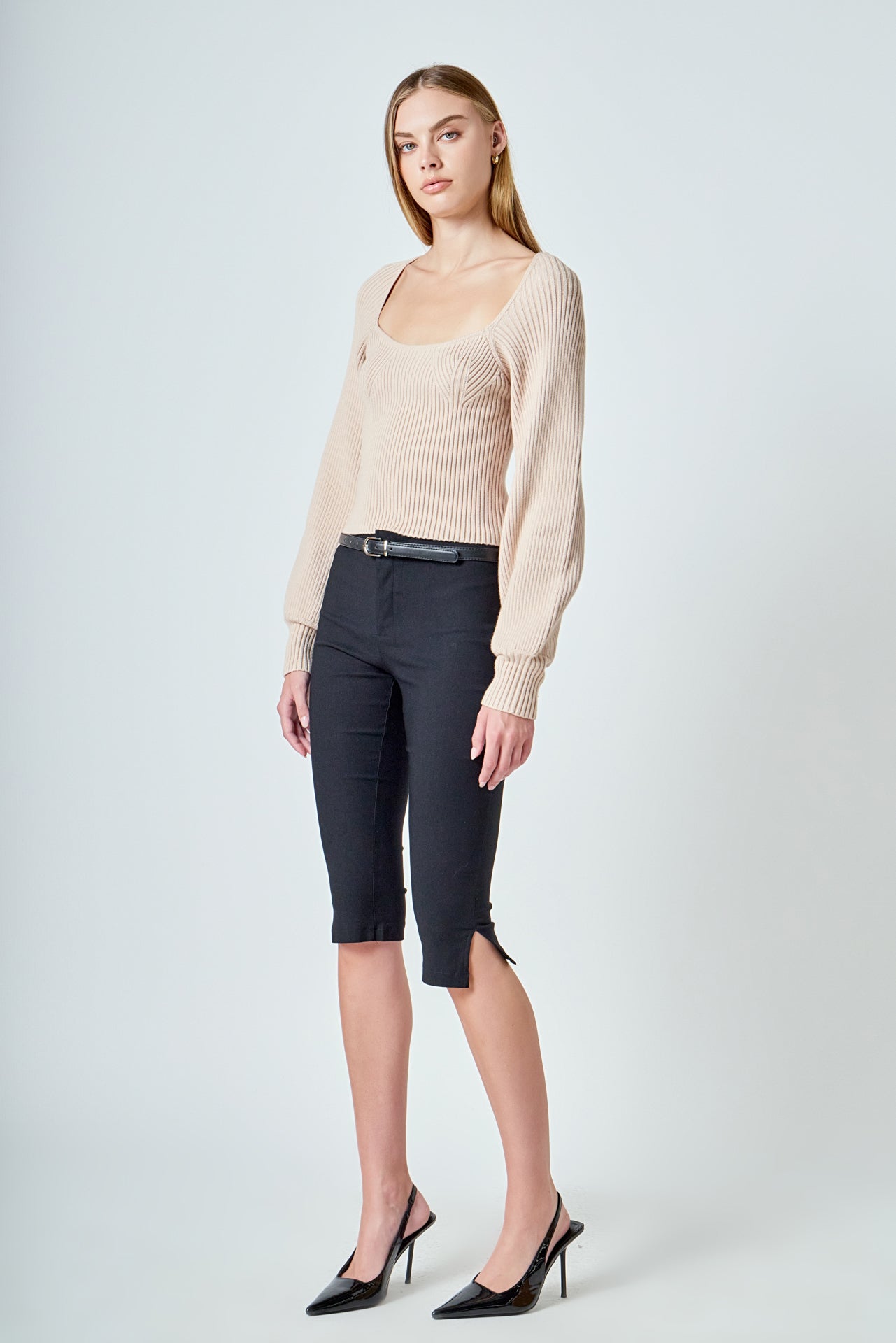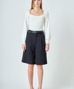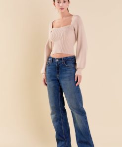 Warm and versatile, this top is knit from a light and airy ribbed fabric that’s perfect for layering. The square neckline and puff sleeves are just the right amount of feminine to take you from day to day. Pair with your favorite jeans and boots or a skirt for a more feminine look.