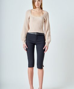 Warm and versatile, this top is knit from a light and airy ribbed fabric that’s perfect for layering. The square neckline and puff sleeves are just the right amount of feminine to take you from day to day. Pair with your favorite jeans and boots or a skirt for a more feminine look.