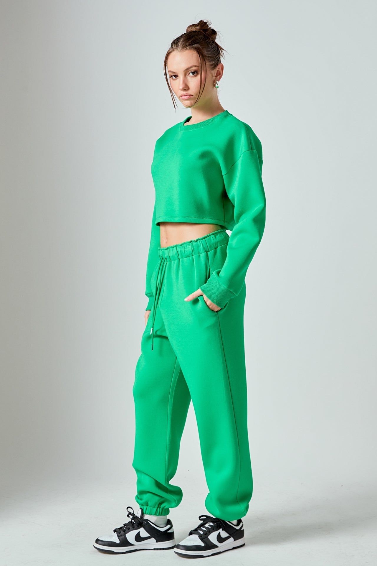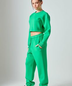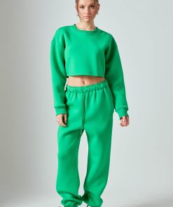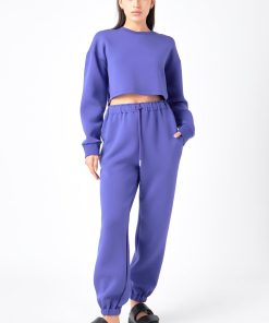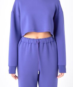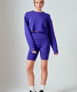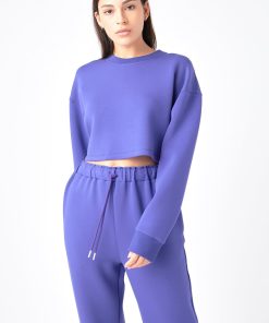 This cropped sweatshirt is the perfect blend of comfort and style. The scuba fabric is soft and stretchy making it perfect for lounging around or running errands. With a round neckline and long sleeves this sweatshirt will keep you warm all winter long.