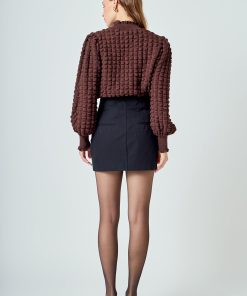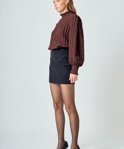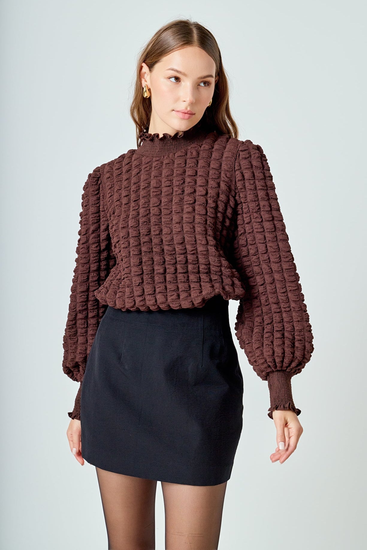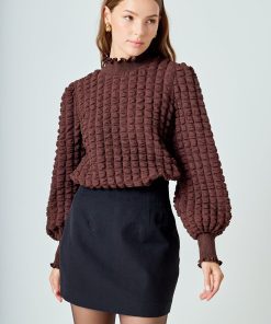 Endless Rose Women’s Mock Neck Long-sleeve Blouse | Ivory|brown