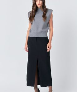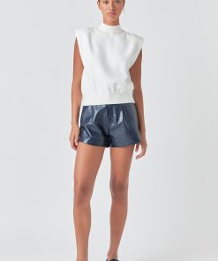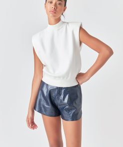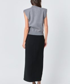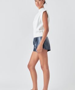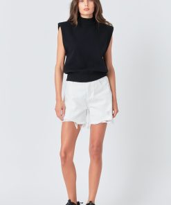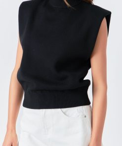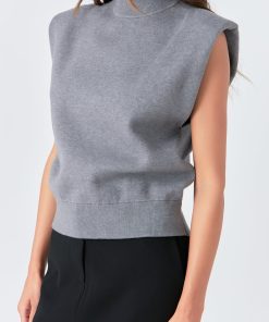 This stylish Mock Neck Sleeveless Knit Top is perfect for your everyday wardrobe. With shoulder padding and sleeveless design this top creates an attractive silhouette is simple to style and is built to last. Crafted from premium materials and with a mock neckline this knit top will be sure to turn heads. Stand out from the crowd with this beautiful Mock Neck Sleeveless Knit Top.