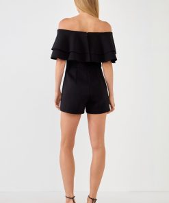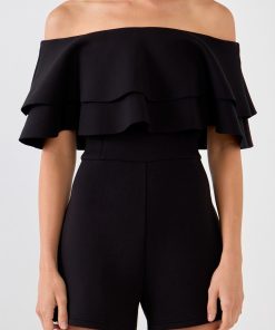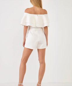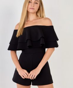 Endless Rose Women’s Off The Shoulder Ruffled Romper | White|black