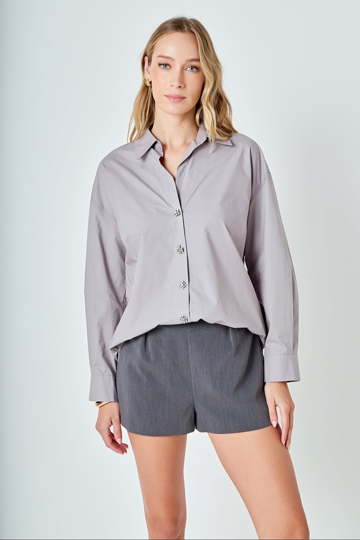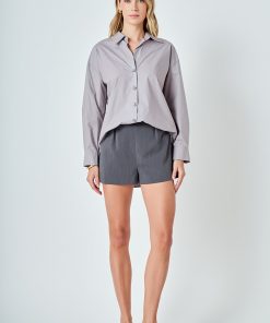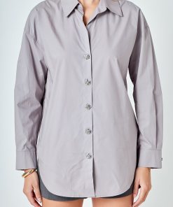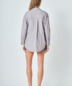 Endless Rose Women’s Oversize Button Collared Shirt | Dusty Pink|grey