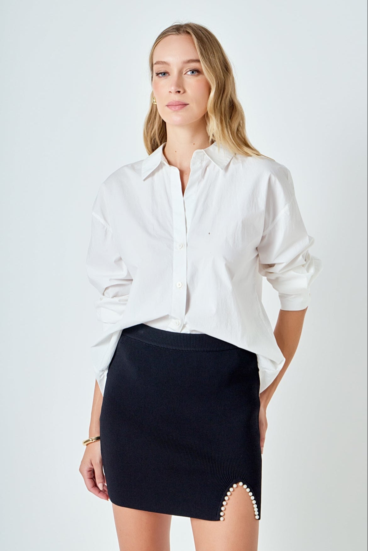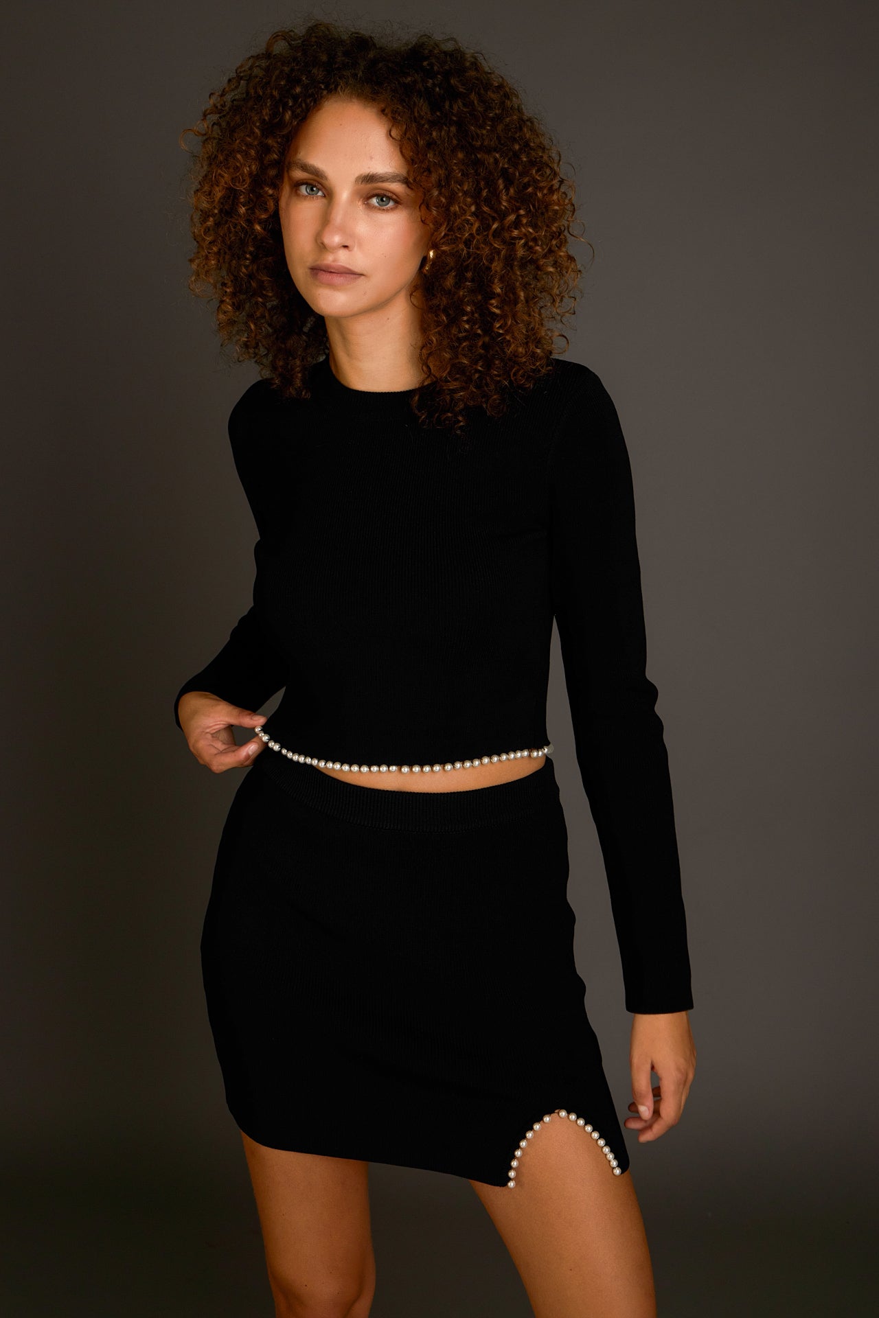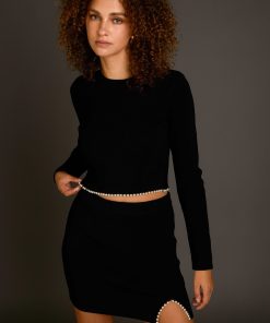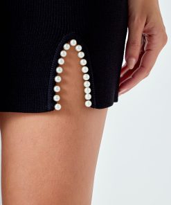 Endless Rose Women’s Pearl Accented Cutout Mini Skirt | Black