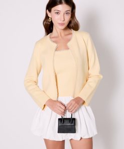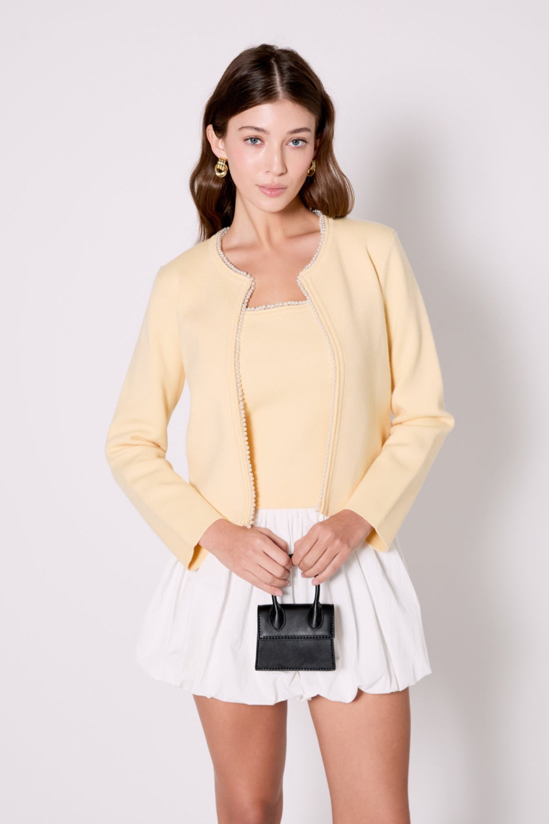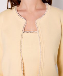 Look stylish and stay warm with this Pearl Trim Knit Cardigan! Featuring a round neckline center front hook, eye closure long sleeves, and beautiful pearl trim. This cardigan is an easy way to add a classic touch of elegance to any outfit! Soft and comfortable it’s perfect for any occasion. Get ready to turn heads with this must-have jacket!