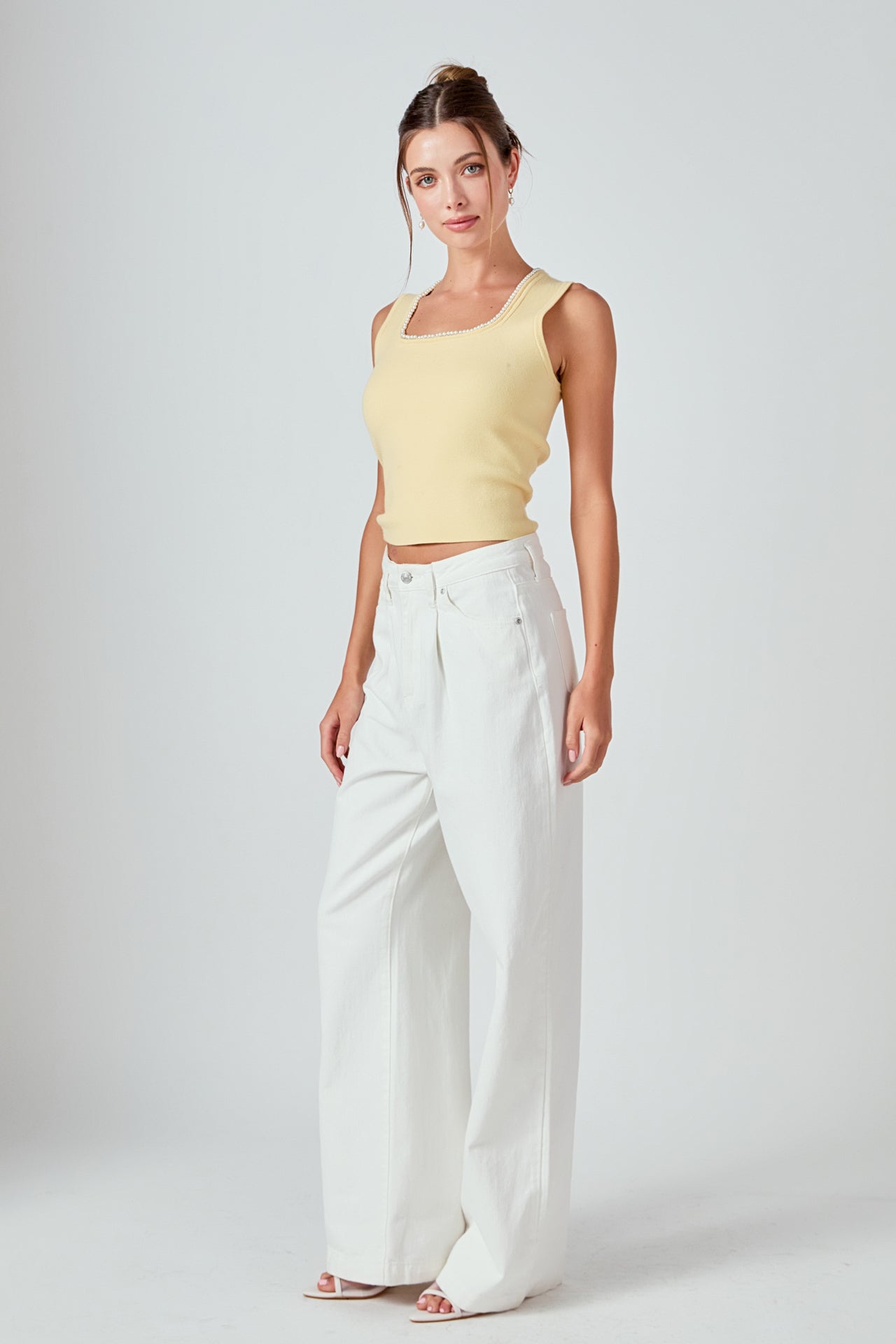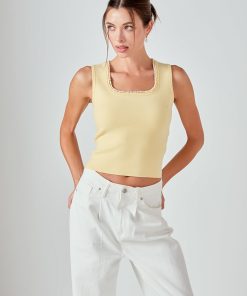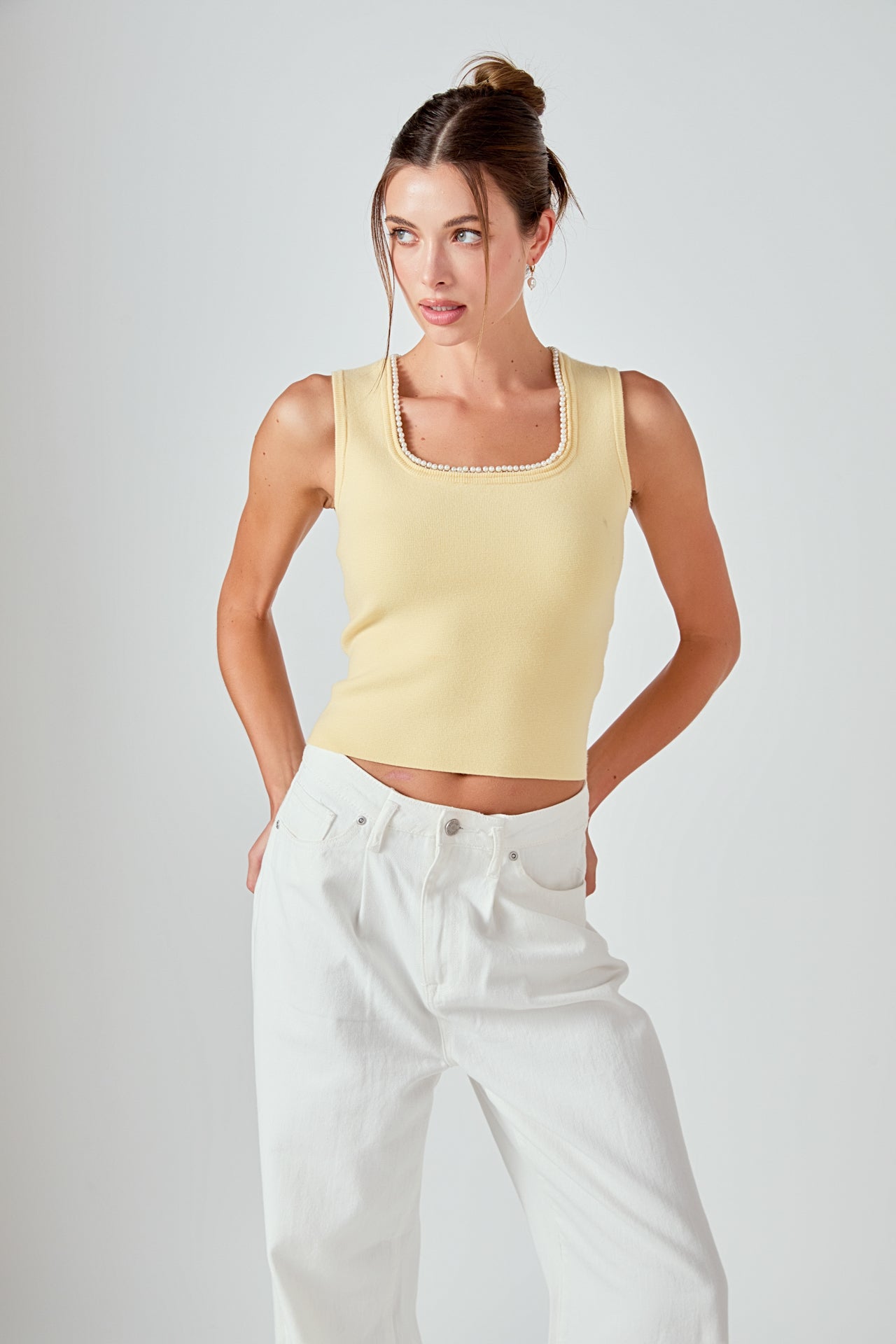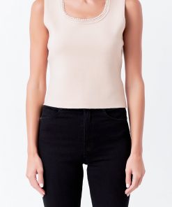 This Pearl Trim Knit Tank Top is a perfect choice for summer. It’s designed with a round neckline sleeveless silhouette and a pearl trim along the neckline for a touch of elegance. This top is made of comfortable and breathable fabric and also perfectly compliments any outfit. It is an easy pull over that you’ll love to flaunt and is sure to become a timeless wardrobe staple. Shop now for this unique high quality tank top.