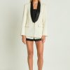This cropped jacket is constructed with high-quality tweed and detailed gold buttons. Also, the shoulder pads add a structured element to the piece, so it lays on you beautifully.