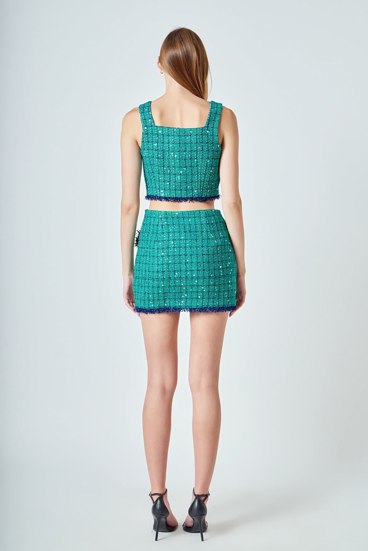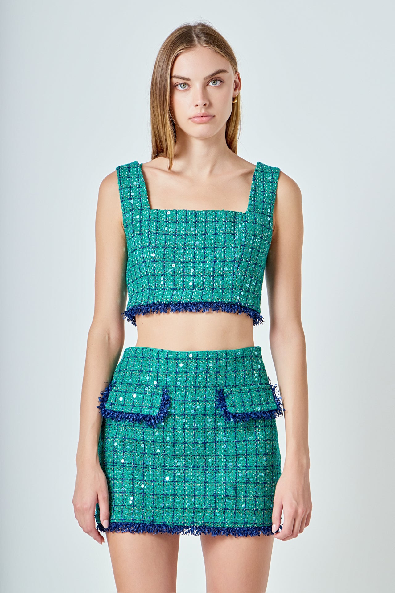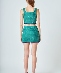 Endless Rose Women’s Premium Cropped Tweed Tank Top | Green & Navy