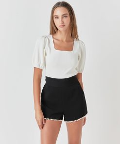 Endless Rose Women’s Premium Pearl-trimmed Shorts | Black