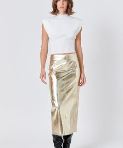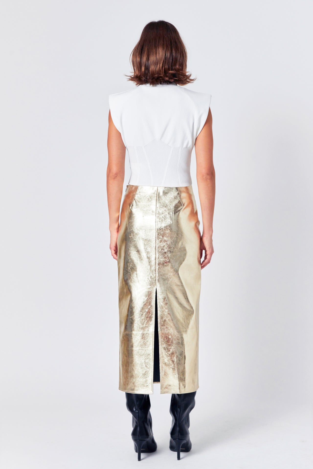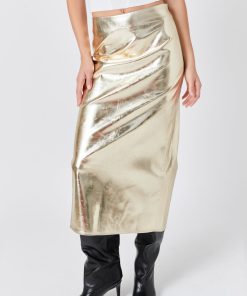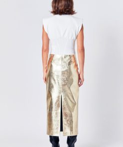 Introducing our Printed Foil Faux Leather Maxi Skirt, a must-have piece for any fashionista’s wardrobe! The Maxi length adds effortless elegance while the Printed foil detailing adds a touch of glamour. Crafted from high-quality faux leather, this skirt exudes luxury and sophistication. The side zipper makes it easy to slip on and off, perfect for those busy days. Pair it with a crisp blouse or a fitted top for a chic ensemble. Don’t miss out on this statement-making skirt that will turn heads wherever you go. Upgrade your style game now with our Printed Foil Faux Leather Maxi Skirt!