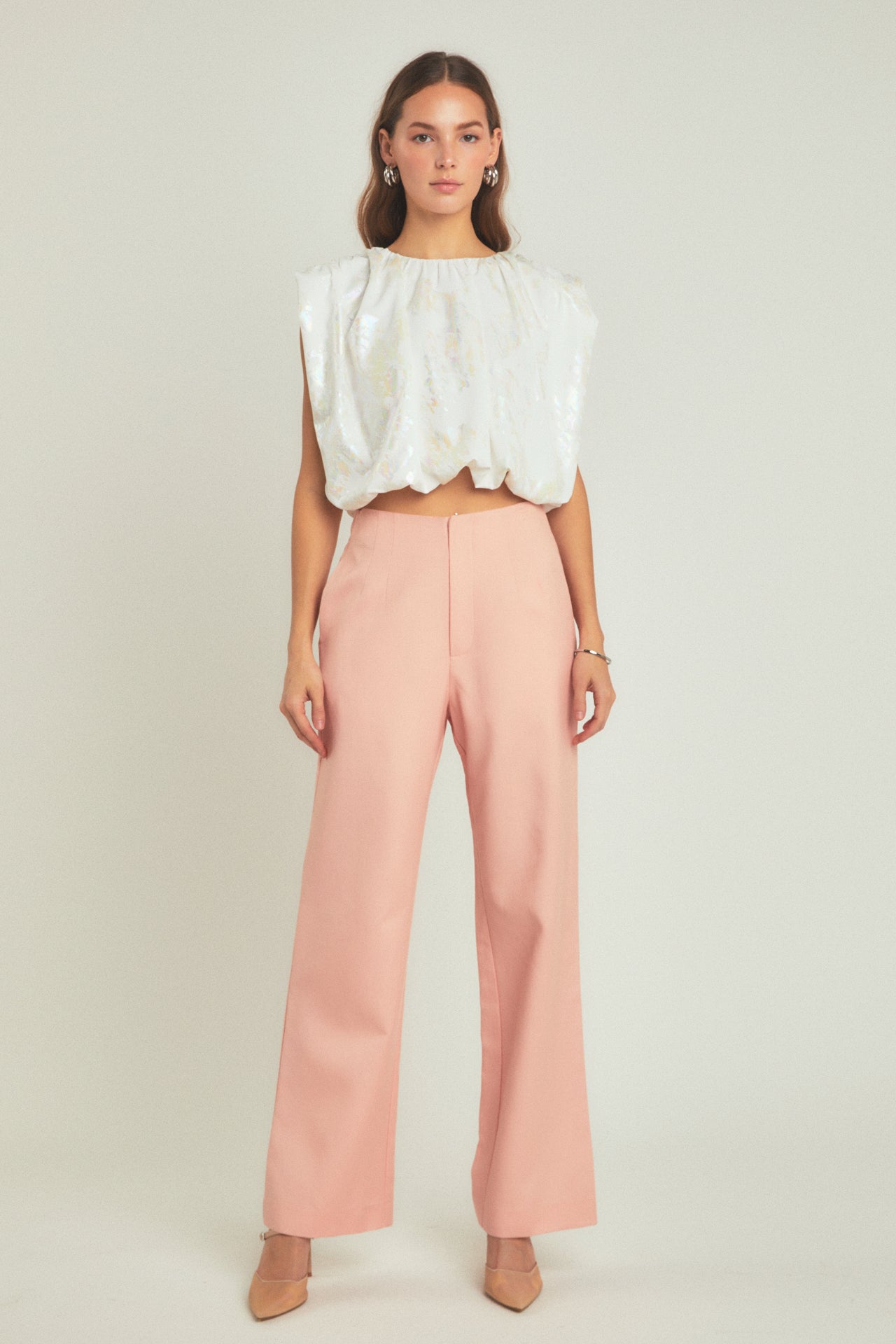 Glam up your wardrobe with our Printed Foil Sleeveless Top! Featuring a glistening foil print, this top will make you stand out from the crowd. The round neck design adds a touch of sophistication while the cropped length keeps it trendy. Made with a sleeveless design, it’s perfect for warmer days or layering with a jacket. Style it with high-waisted jeans or a skirt for a chic look. Don’t miss out on this statement piece that will elevate any outfit. Dazzle in our Printed Foil Sleeveless Top, a must-have for your closet!