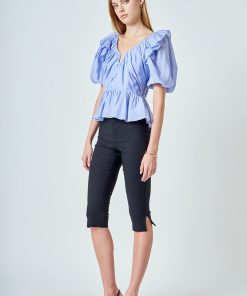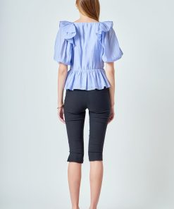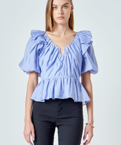 Endless Rose Women’s Puff Sleeve Peplum Top | Powder Blue