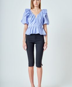 Endless Rose Women’s Puff Sleeve Peplum Top | Powder Blue