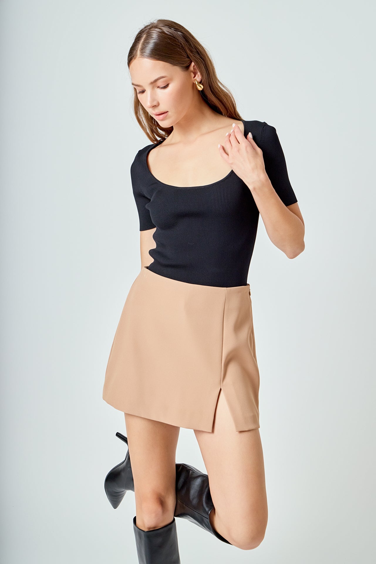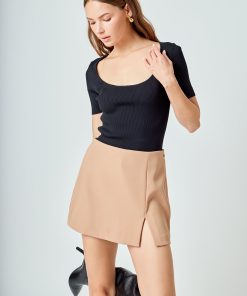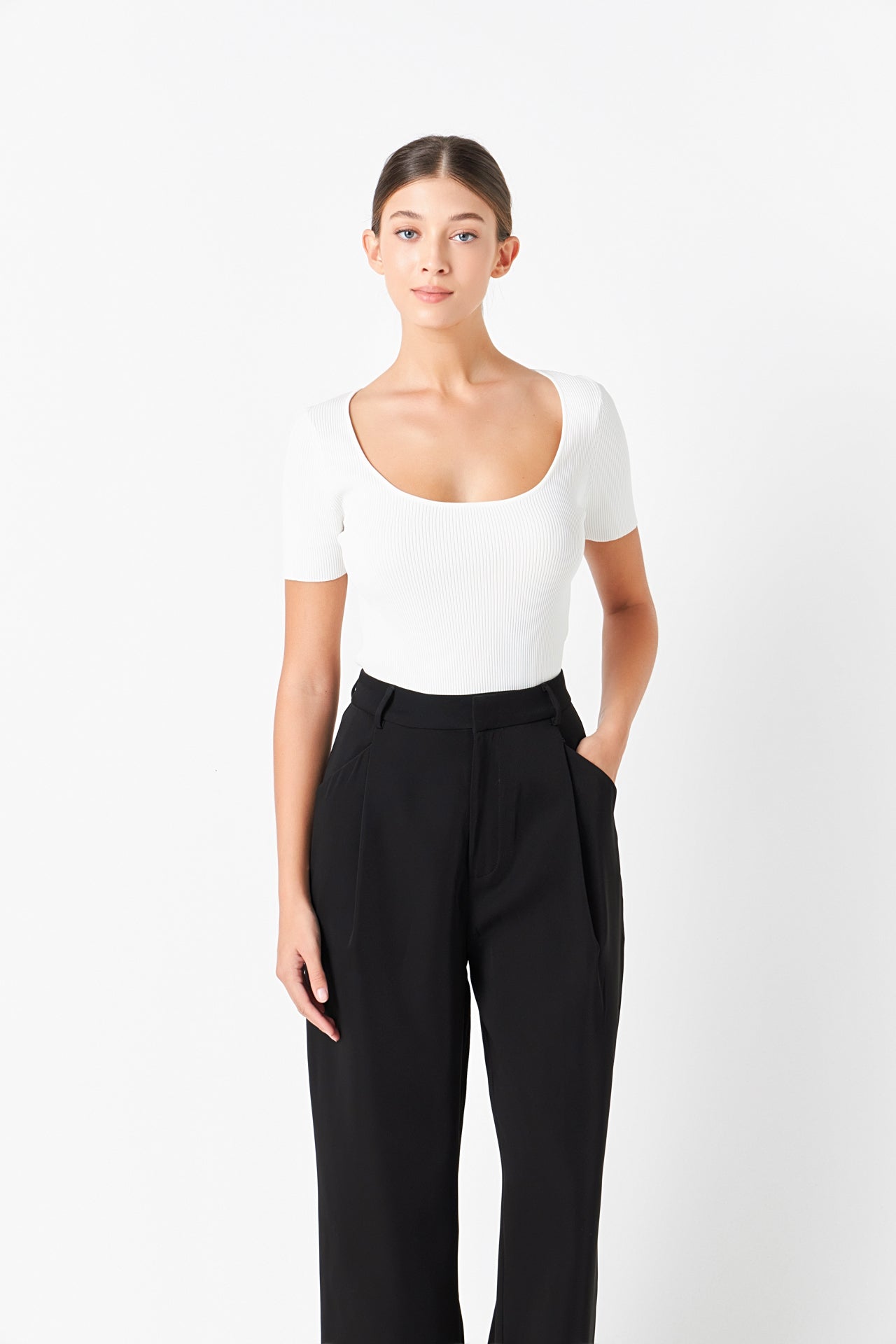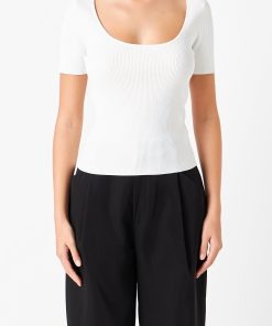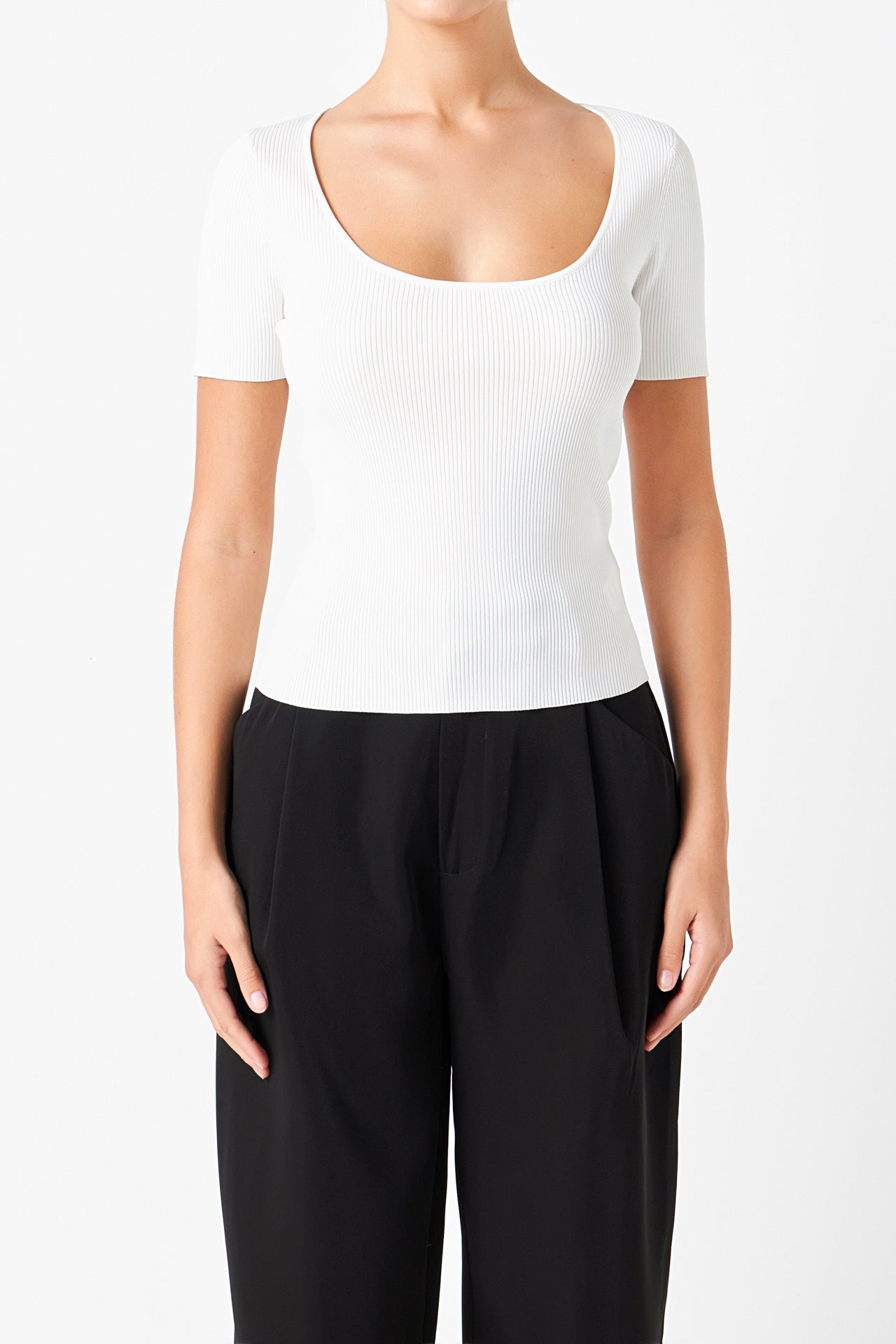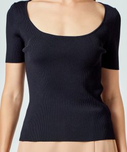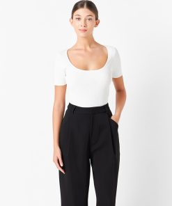 This fitted ribbed top is designed to hug your curves with its deep U neckline and short sleeves. The snug fit makes it easy to move with you whatever your activity. Look and feel sleek in this stylish top.