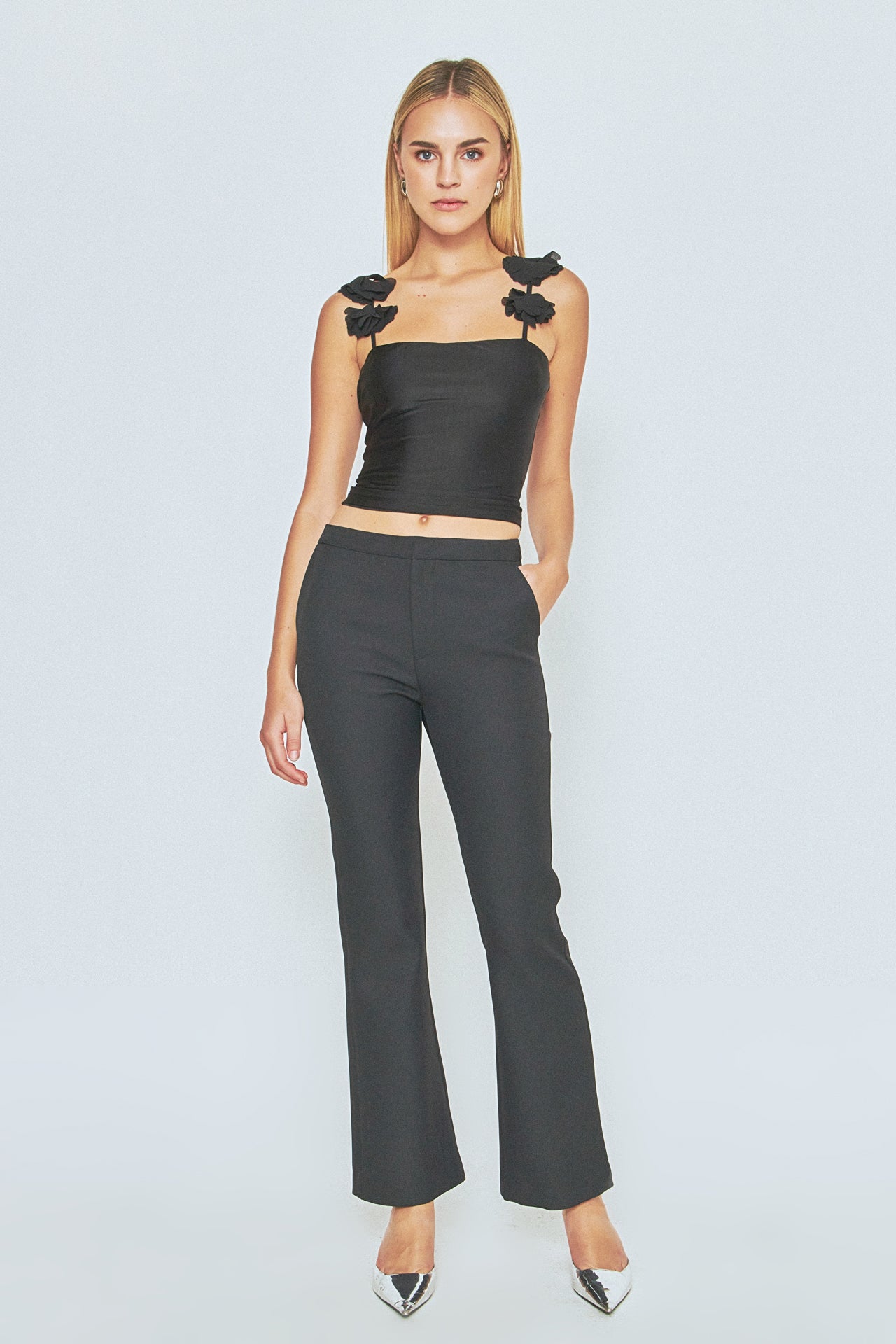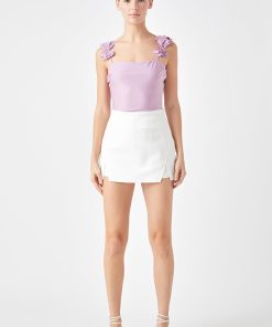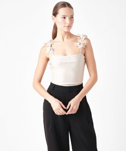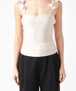Introducing our must-have Rosette Shoulder Fitted Top for a sleek and stylish look. Crafted with a double layer self this top hugs your curves beautifully. The shoulder flower detail adds a touch of femininity to your outfit. Perfect for both casual and formal occasions this top is versatile and can be dressed up or down. Please note this top runs small so we recommend sizing up for the perfect fit. Upgrade your wardrobe with this unique and flattering top.