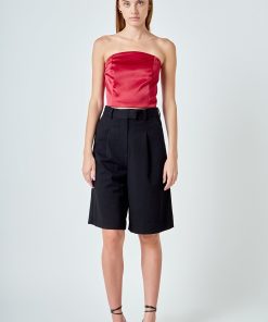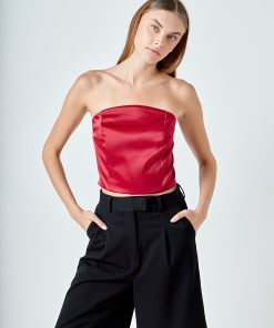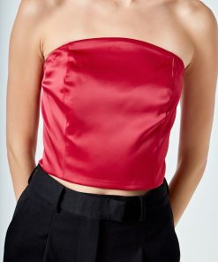Endless Rose Women’s Satin Strapless Curved Bustier | Ruby|teal|red|black|clean Blue|orange