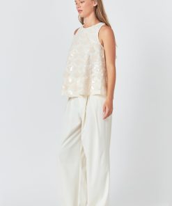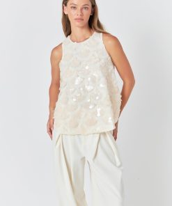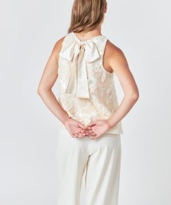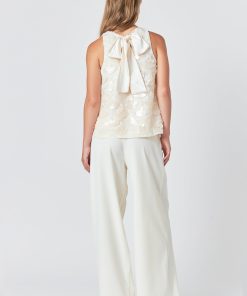 With mesh and sequin fabrication, this endless rose top is designed with an intricate scallop pattern and is fully lined to ensure optimal comfort. On the back, there’s a keyhole detail accented with a large satin bow that adds to the sophisticated femininity of the piece.